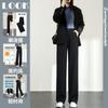 Calça de pernas largas Ice Silk, calça preta fina de verão feminina, calça de terno drapeado de primavera e outono, calça reta de cintura alta, calça feminina plus size