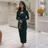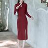 Outono novo temperamento de alta qualidade deusa estilo verde malha de manga comprida bainha cheongsam novo estilo chinês vestido longo