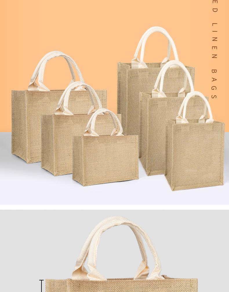 Em estoque saco de lona retrô sem impressão de juta tote linho eco-friendly grande capacidade presente atacado personalizado