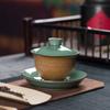 Longquan Celadon Jumping Faca para cobrir tigela Kung Fu Tea Set Tea Bowl Cerâmica Pura Handmade Home Office Receptores Bowl de três talentos Cover Bowl