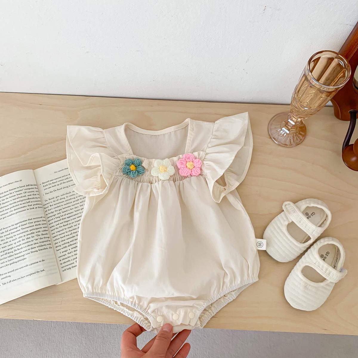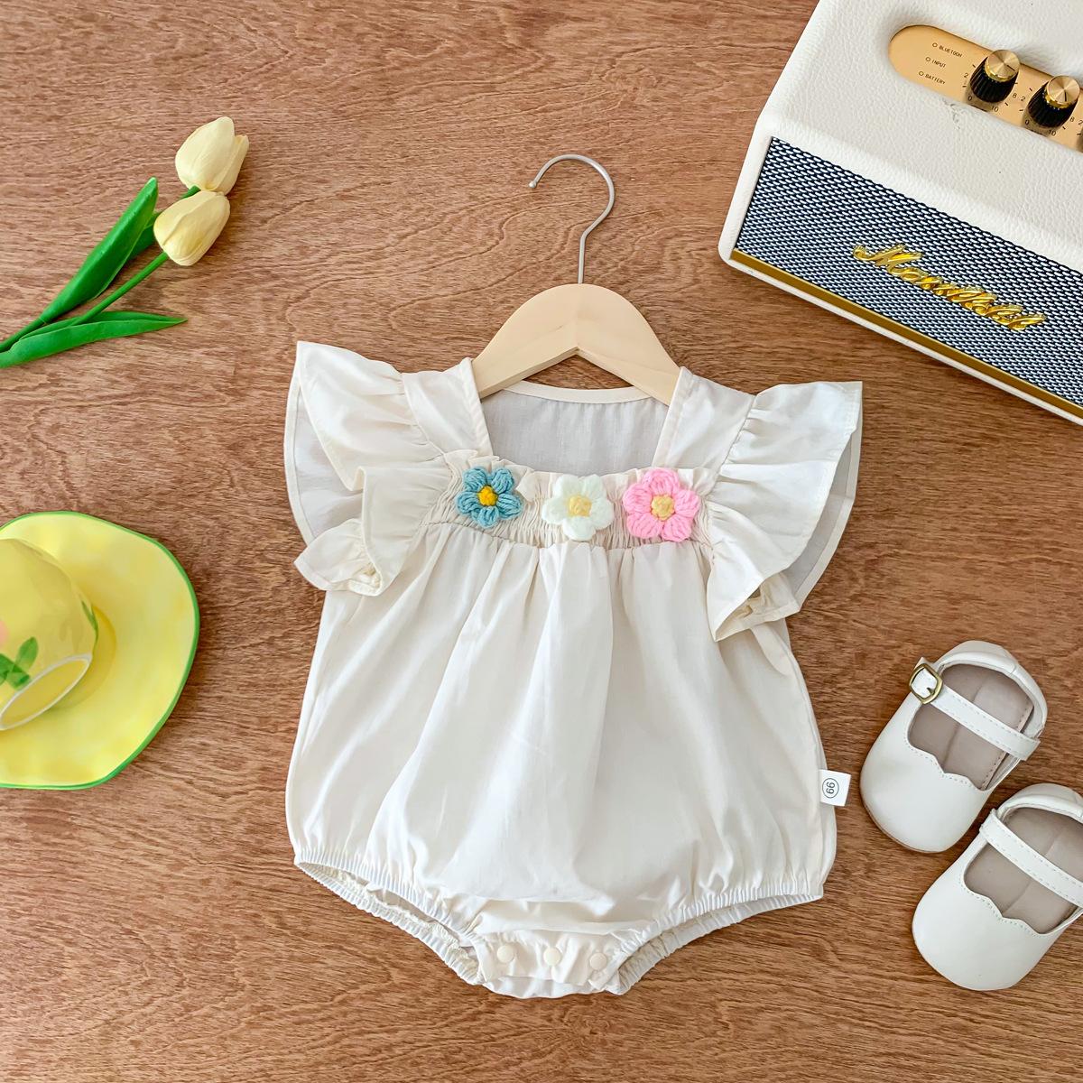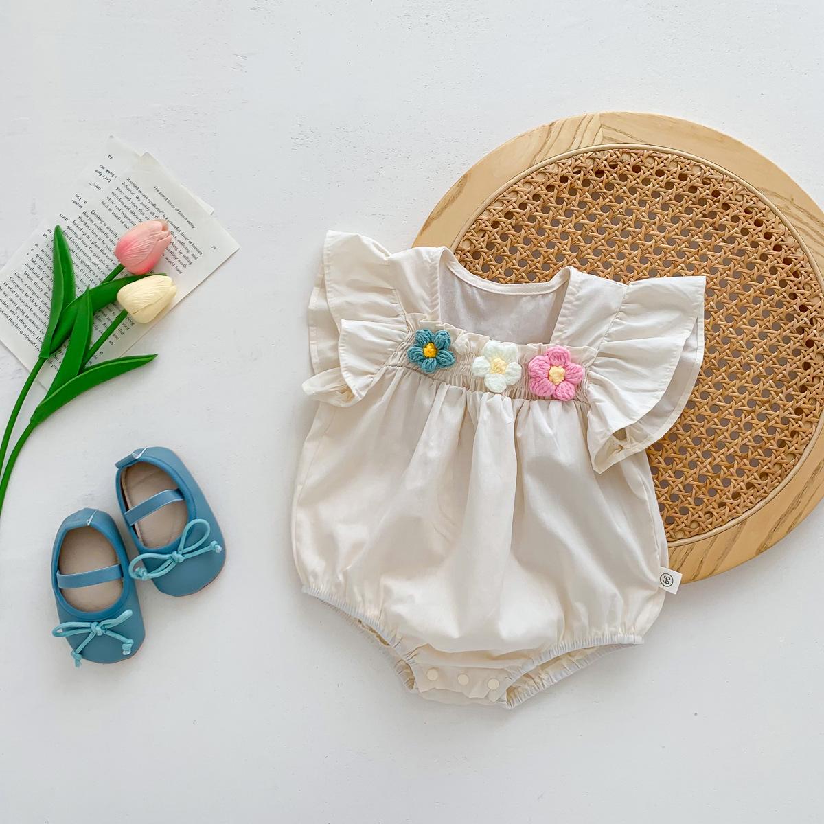 Ins Bebê verão estilo ocidental fino menina peido pequeno flor internet celebridade verão lua cheia princesa triângulo macacão