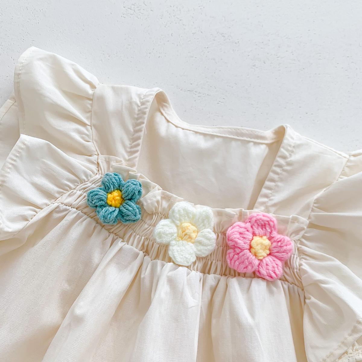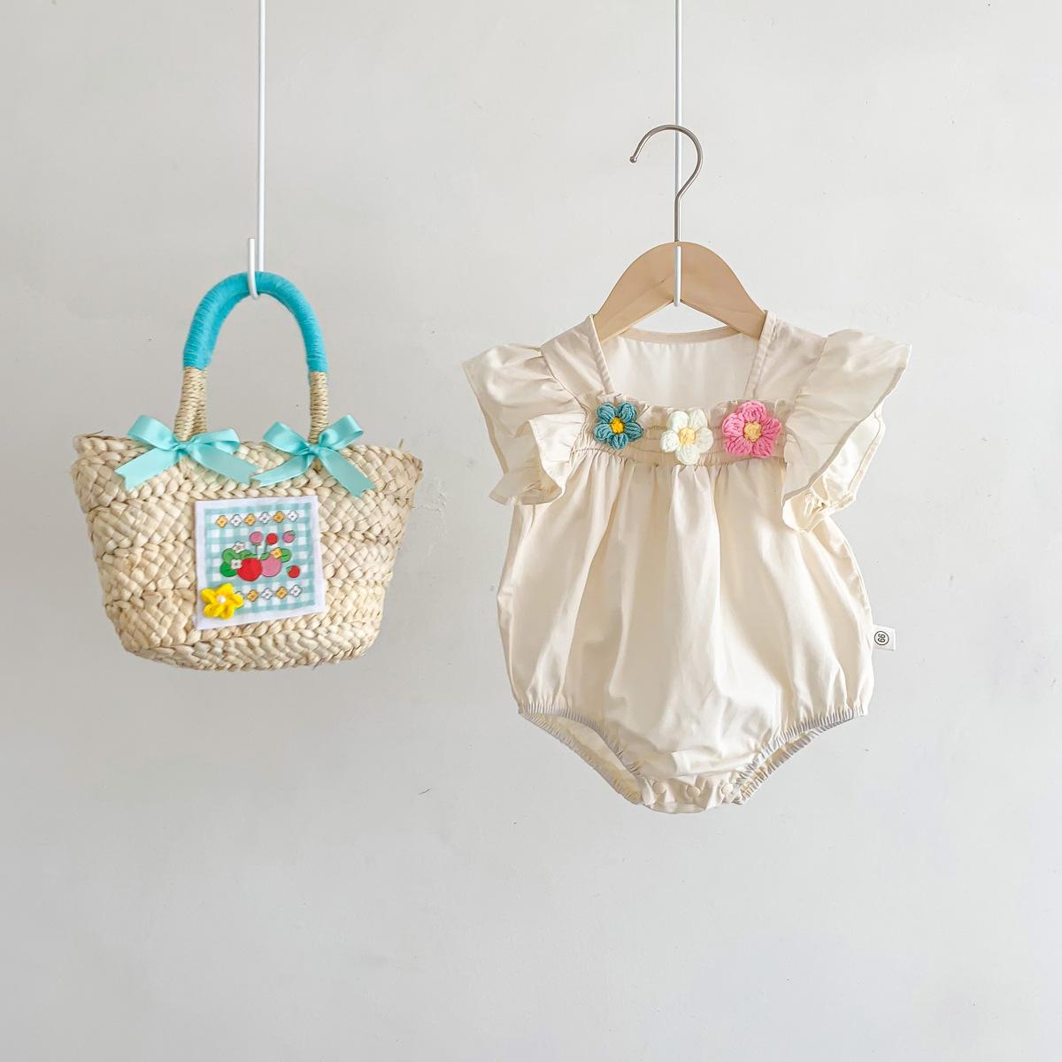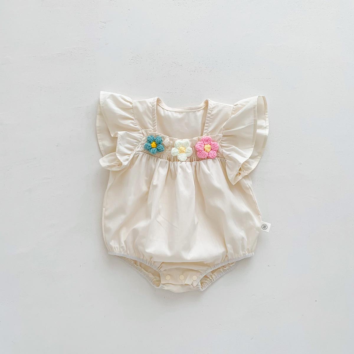 Ins Bebê verão estilo ocidental fino menina peido pequeno flor internet celebridade verão lua cheia princesa triângulo macacão