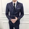 Terno masculino coreano slim-fit listrado três peças vestido profissional terno um botão banquete vestido de casamento