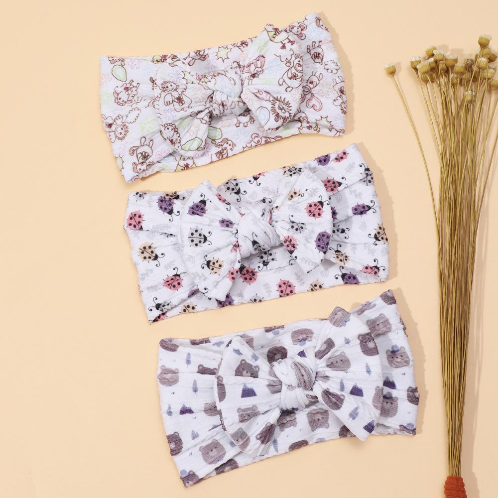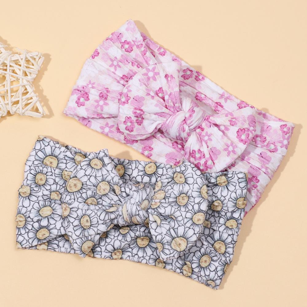 Novos acessórios de cabelo infantis transfronteiriços, faixa de cabelo larga com estampa digital floral para bebê, faixa de cabeça elástica de nylon para bebê, atacado