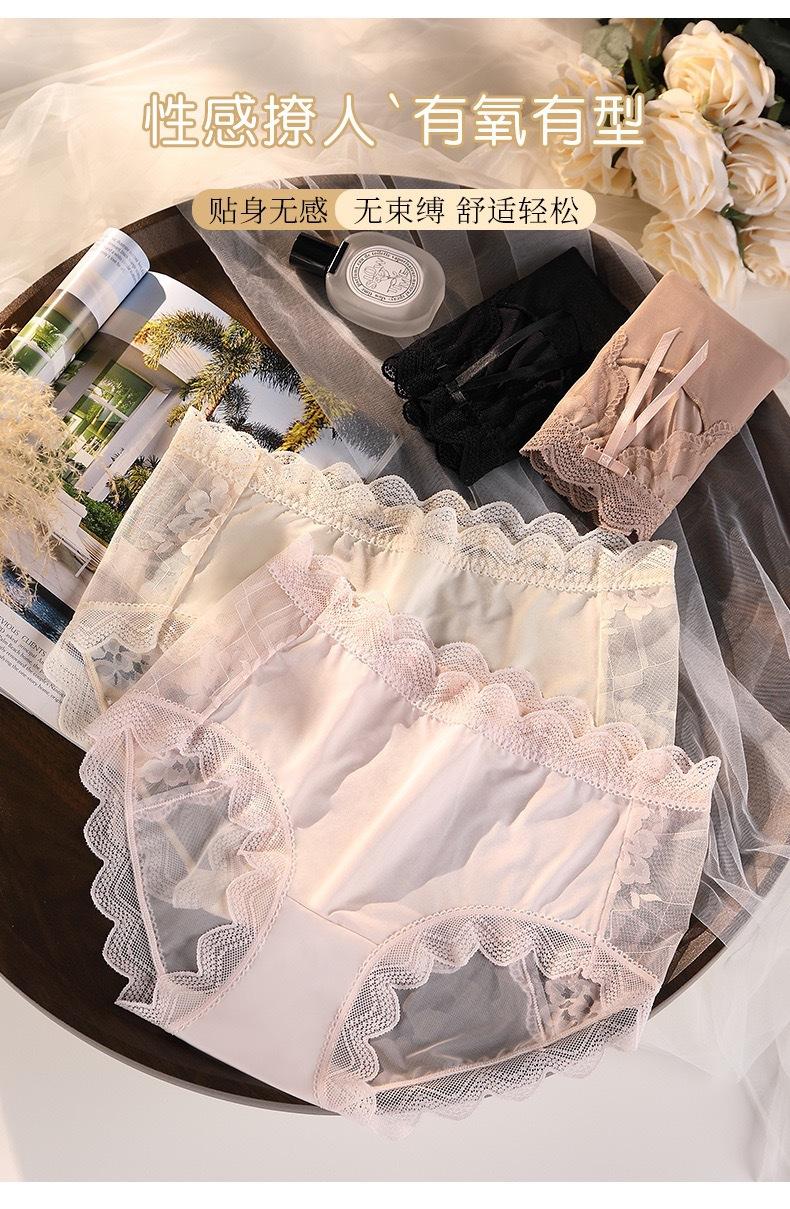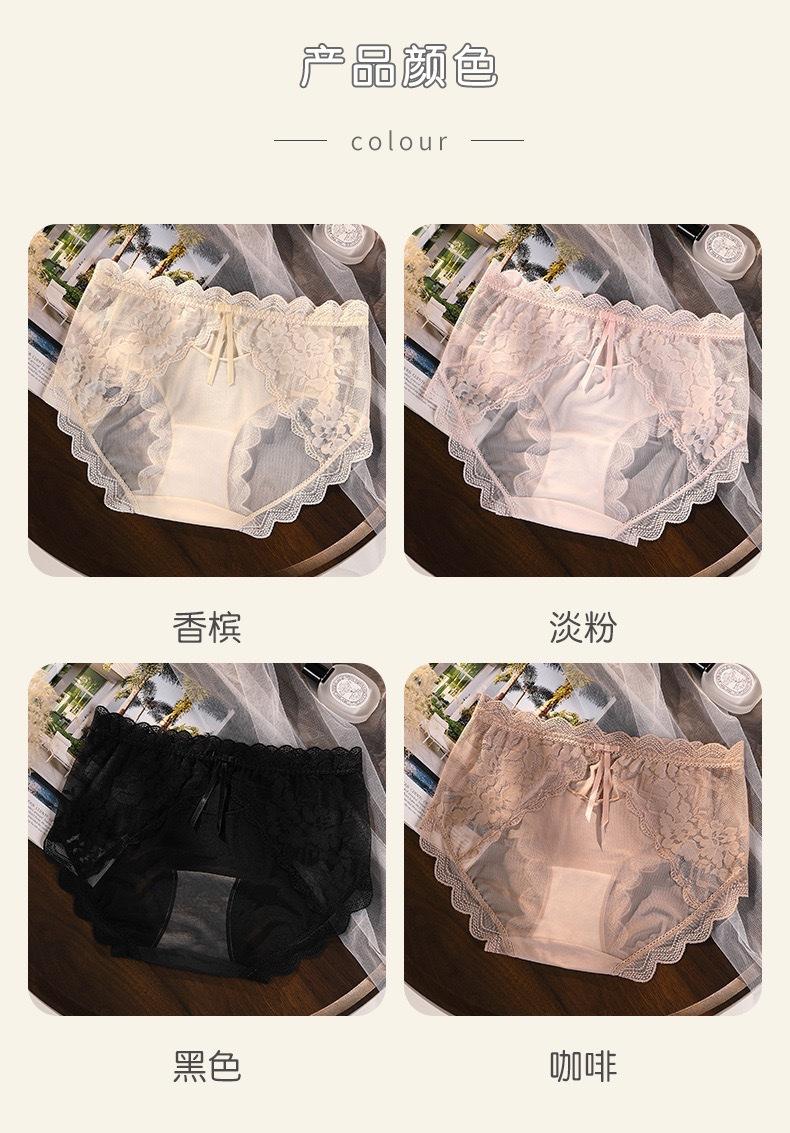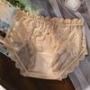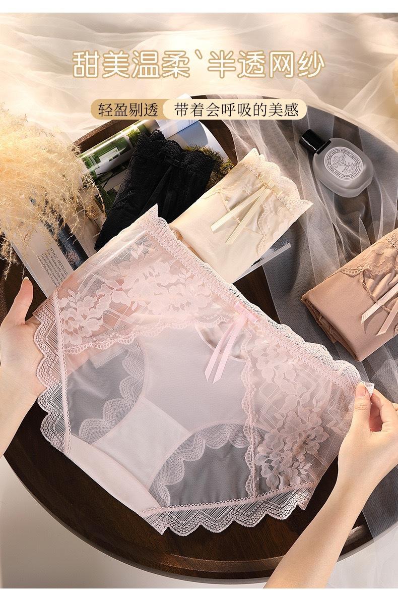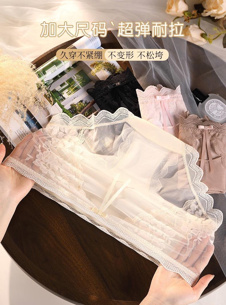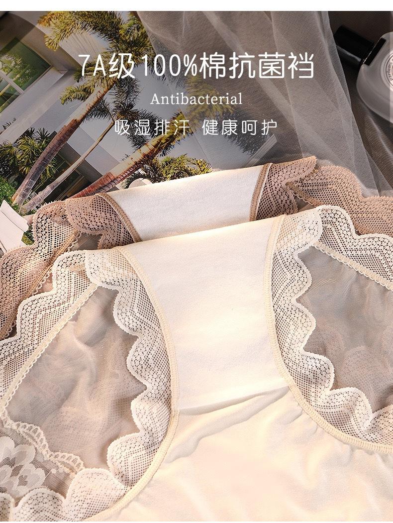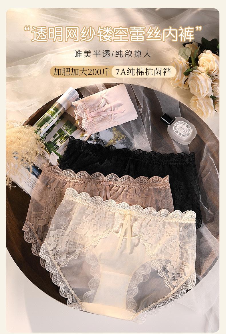 Novo plus size puro sexy renda cueca feminina malha oca transparente algodão puro 7A cueca antibacteriana cintura média