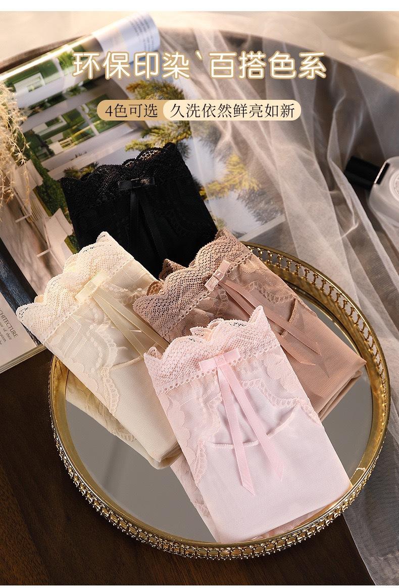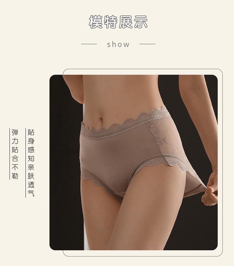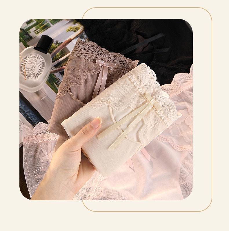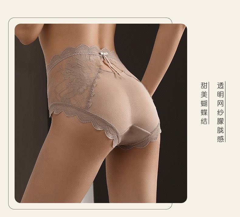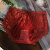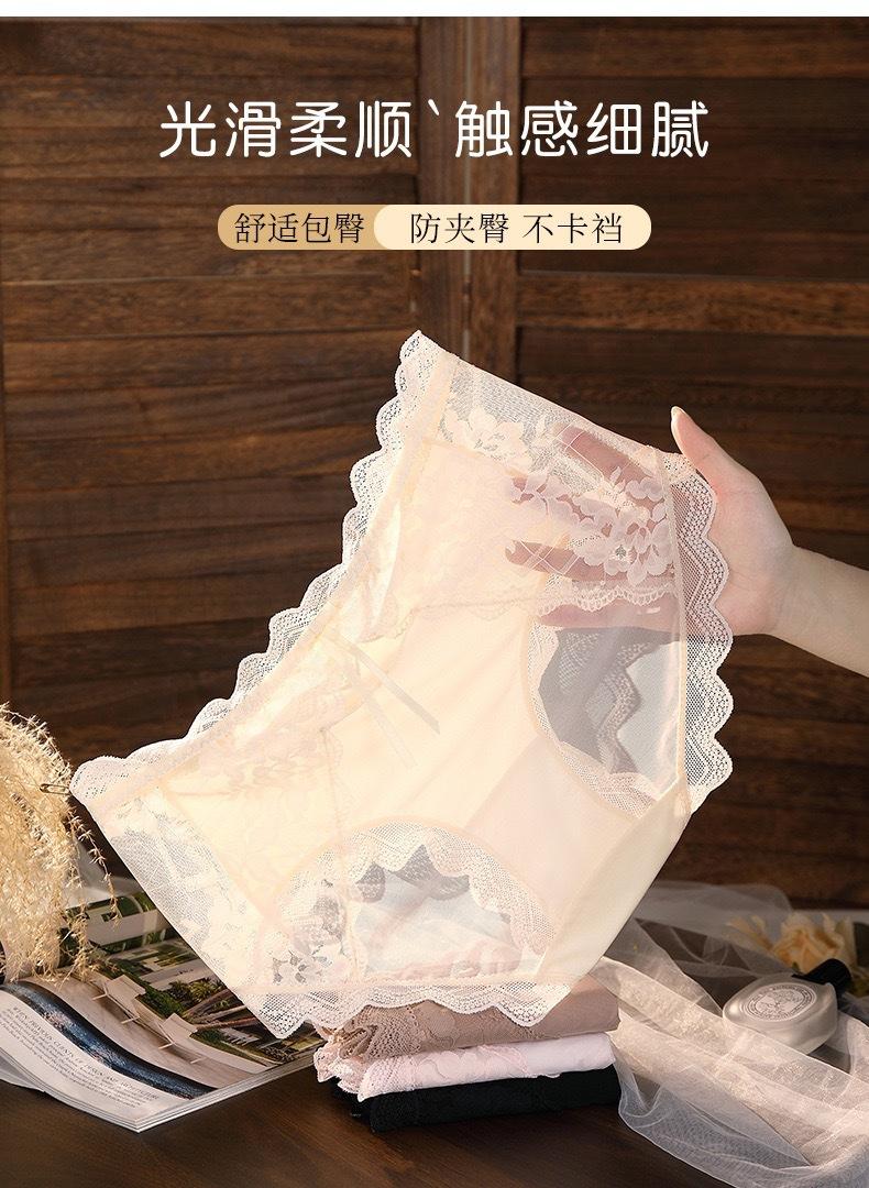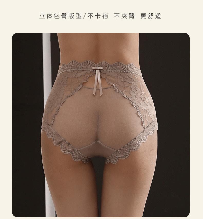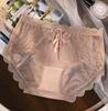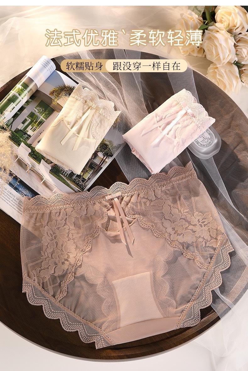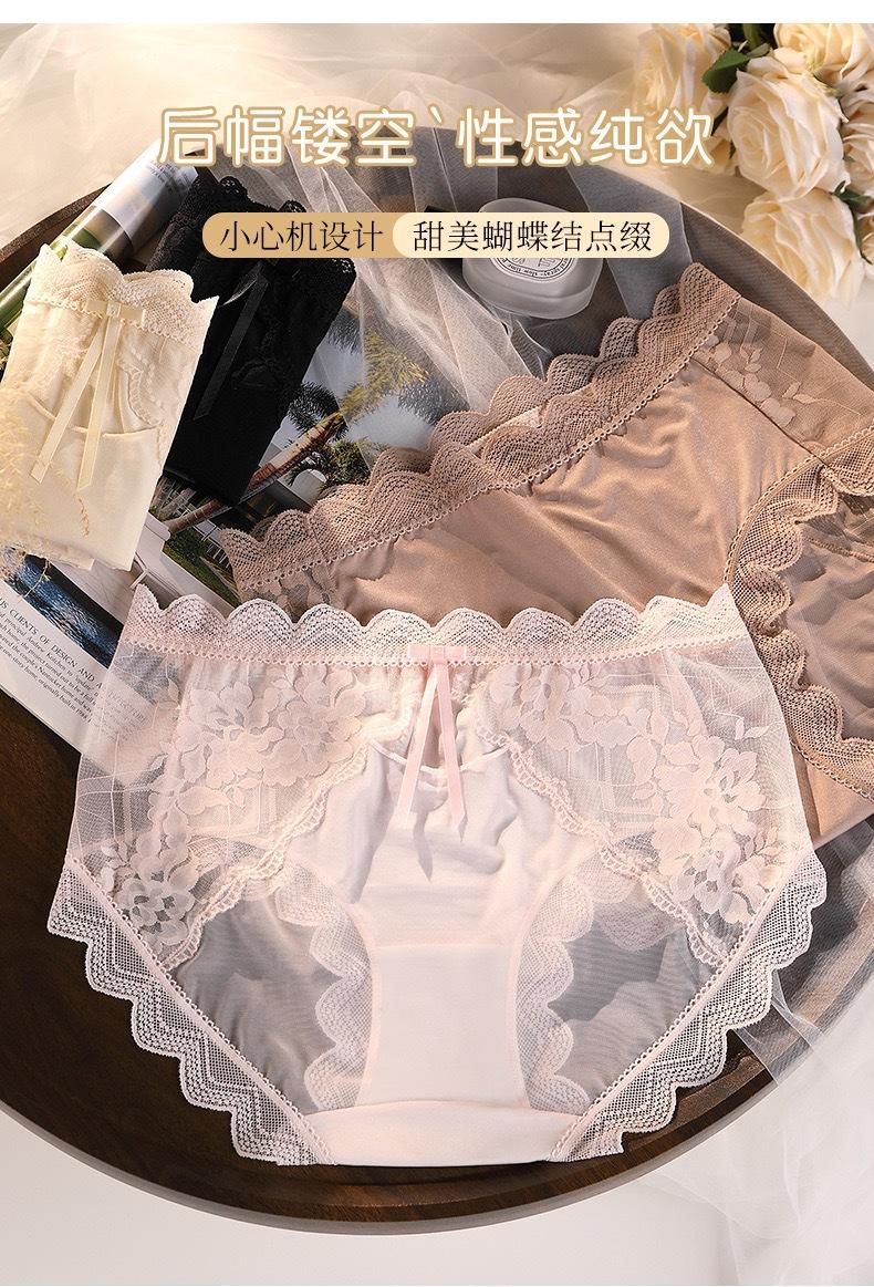 Novo plus size puro sexy renda cueca feminina malha oca transparente algodão puro 7A cueca antibacteriana cintura média