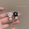 Brincos de gardênia assimétricos com agulha de prata para mulheres, design, nicho, versáteis, brincos de pérola, estilo frio, brincos de temperamento
