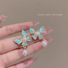 925 agulha de prata retro esmalte borboleta brincos de pérola para mulheres 2024 novo estilo quente brincos high-end
