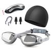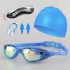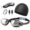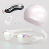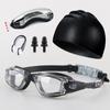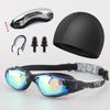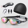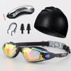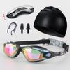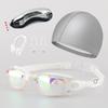 Óculos de natação quentes transfronteiriços, touca de natação, adulto masculino e feminino, HD galvanizado anti-nevoeiro, óculos de natação, clipe de nariz, tampões de ouvido, terno