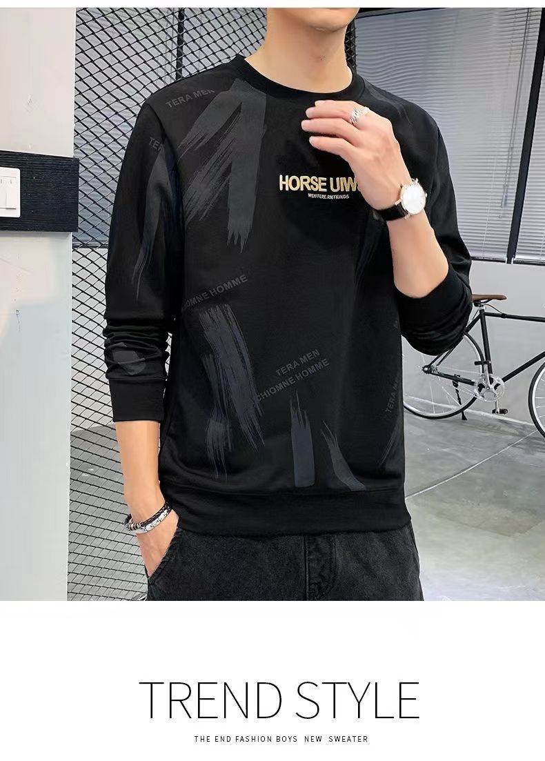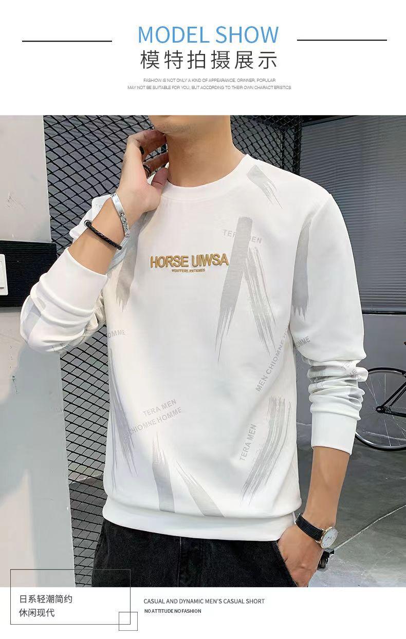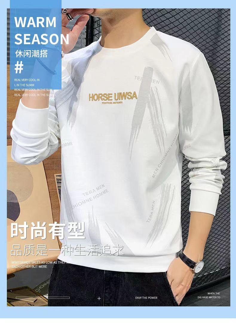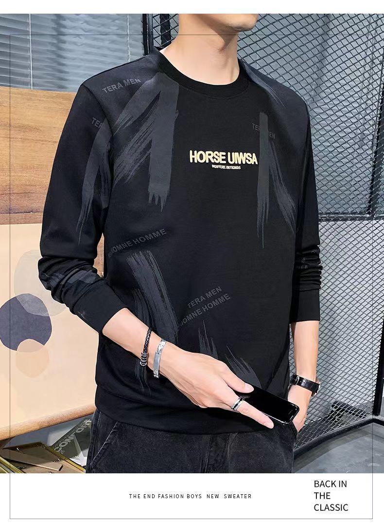 Novo suéter masculino primavera e outono, camiseta masculina de manga comprida, pulôver coreano, gola redonda, camisa casual básica, top masculino moderno