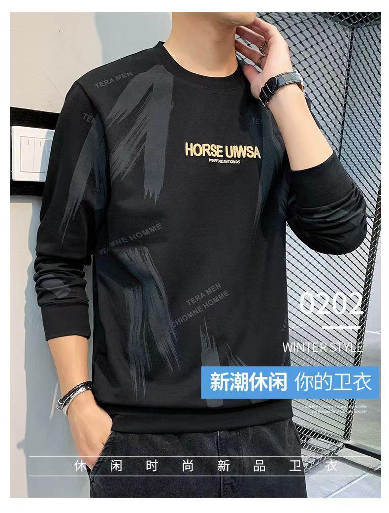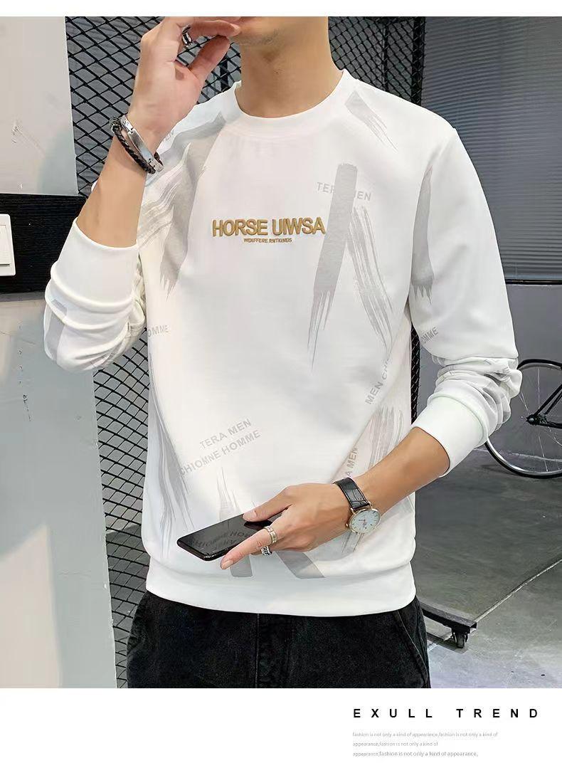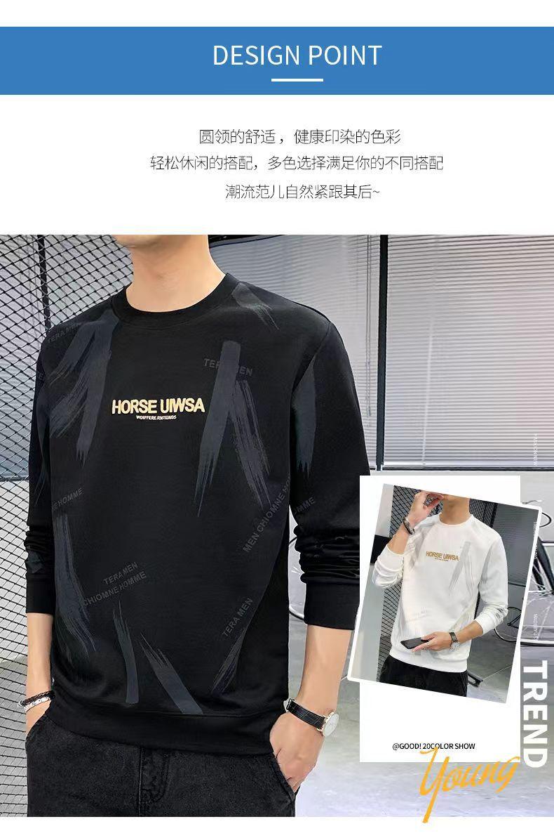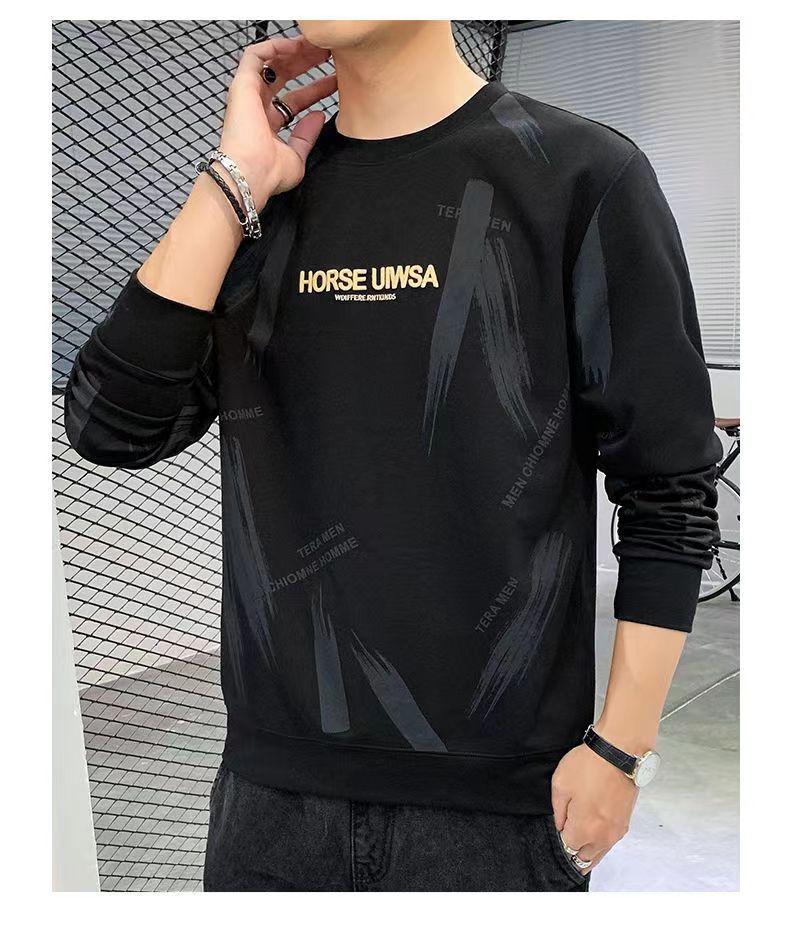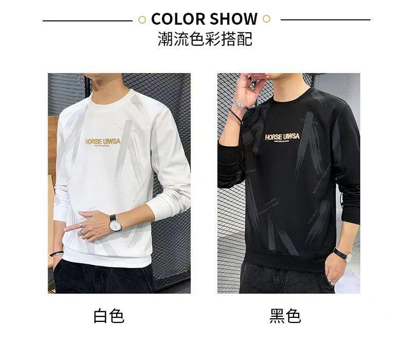 Novo suéter masculino primavera e outono, camiseta masculina de manga comprida, pulôver coreano, gola redonda, camisa casual básica, top masculino moderno