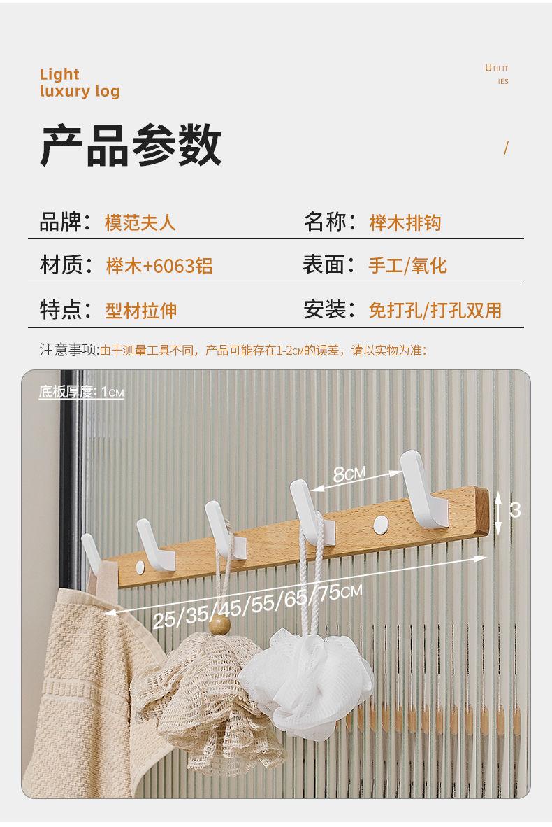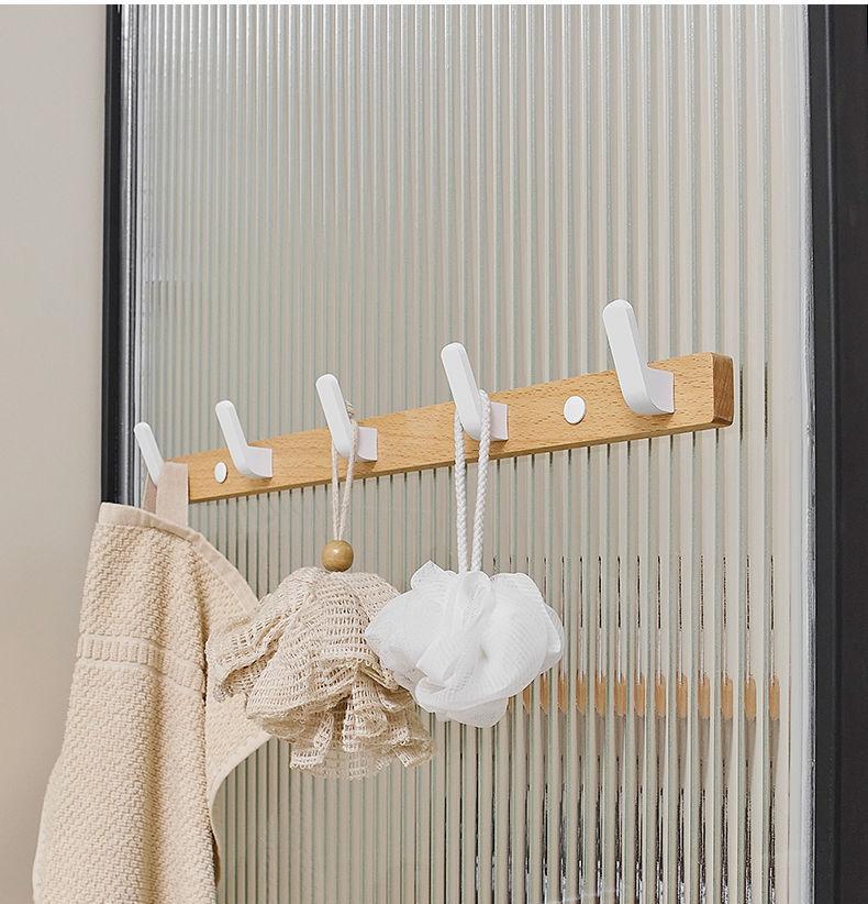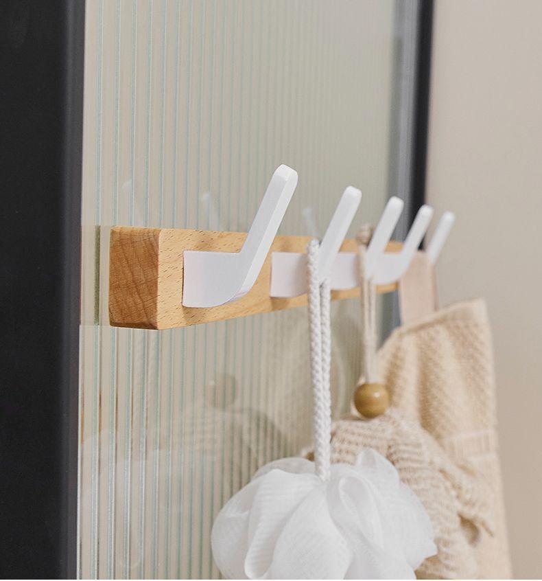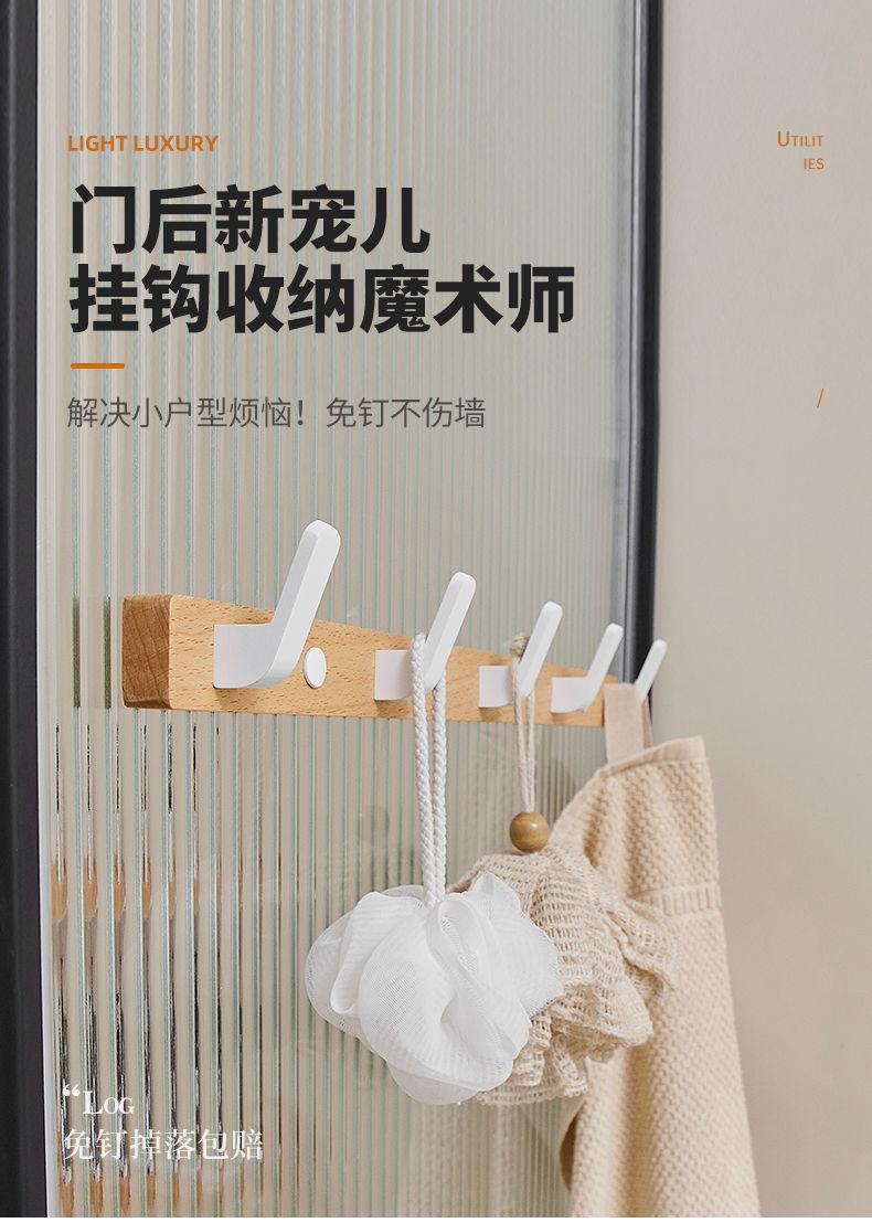 Leite branco gancho de madeira maciça não perfurado porta cabide roupas pendurado gancho parede pendurado ganchos pendurados