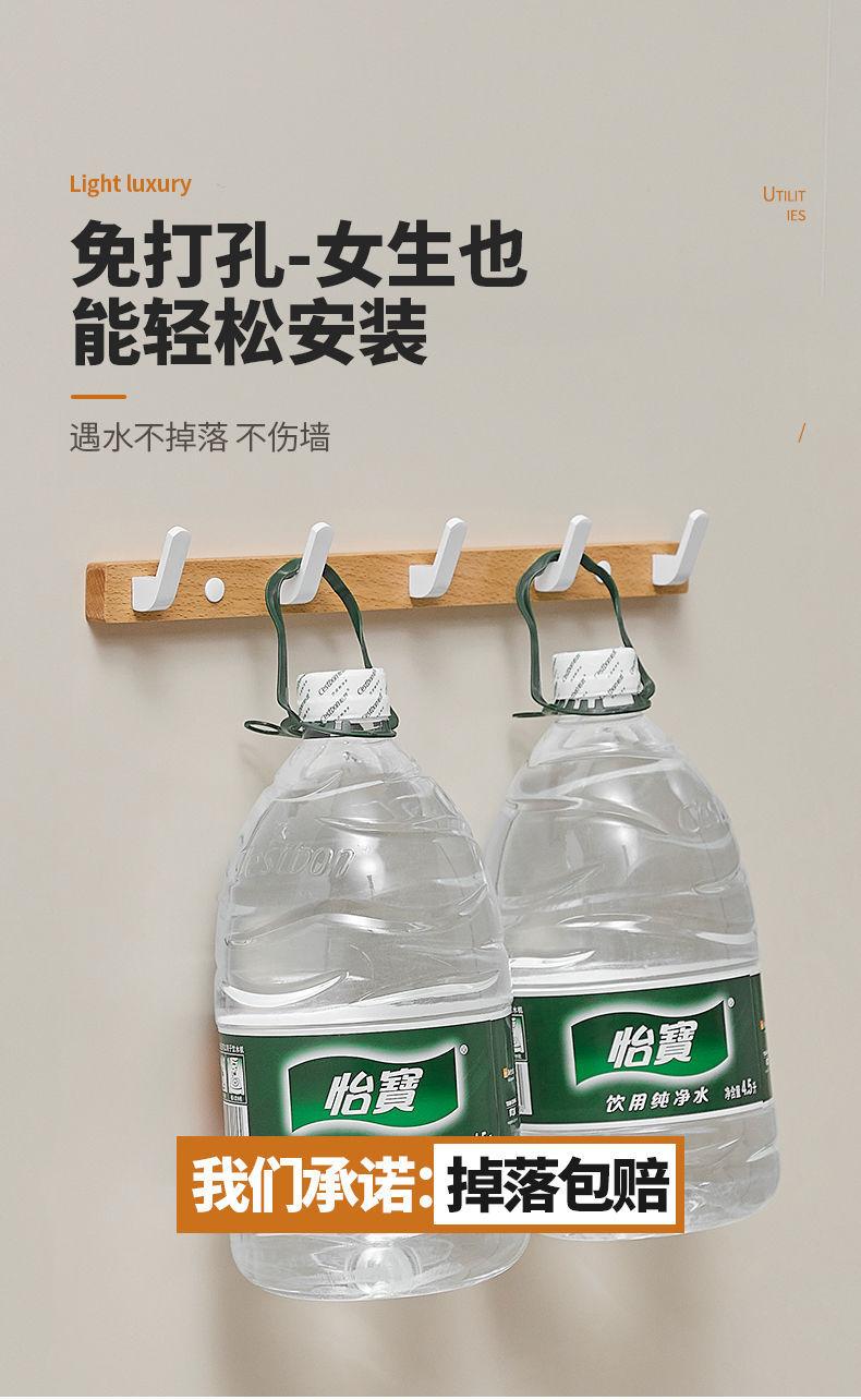 Compre Leite branco gancho de madeira maciça não perfurado porta cabide roupas pendurado gancho parede pendurado ganchos pendurados no atacado no Joom.pro