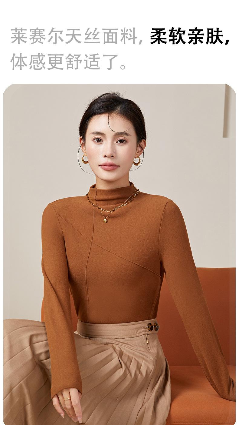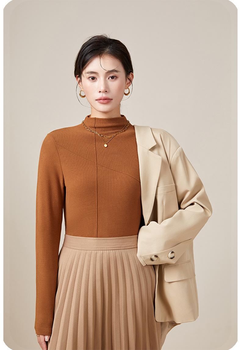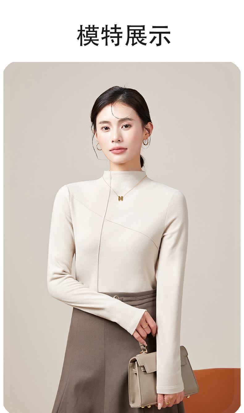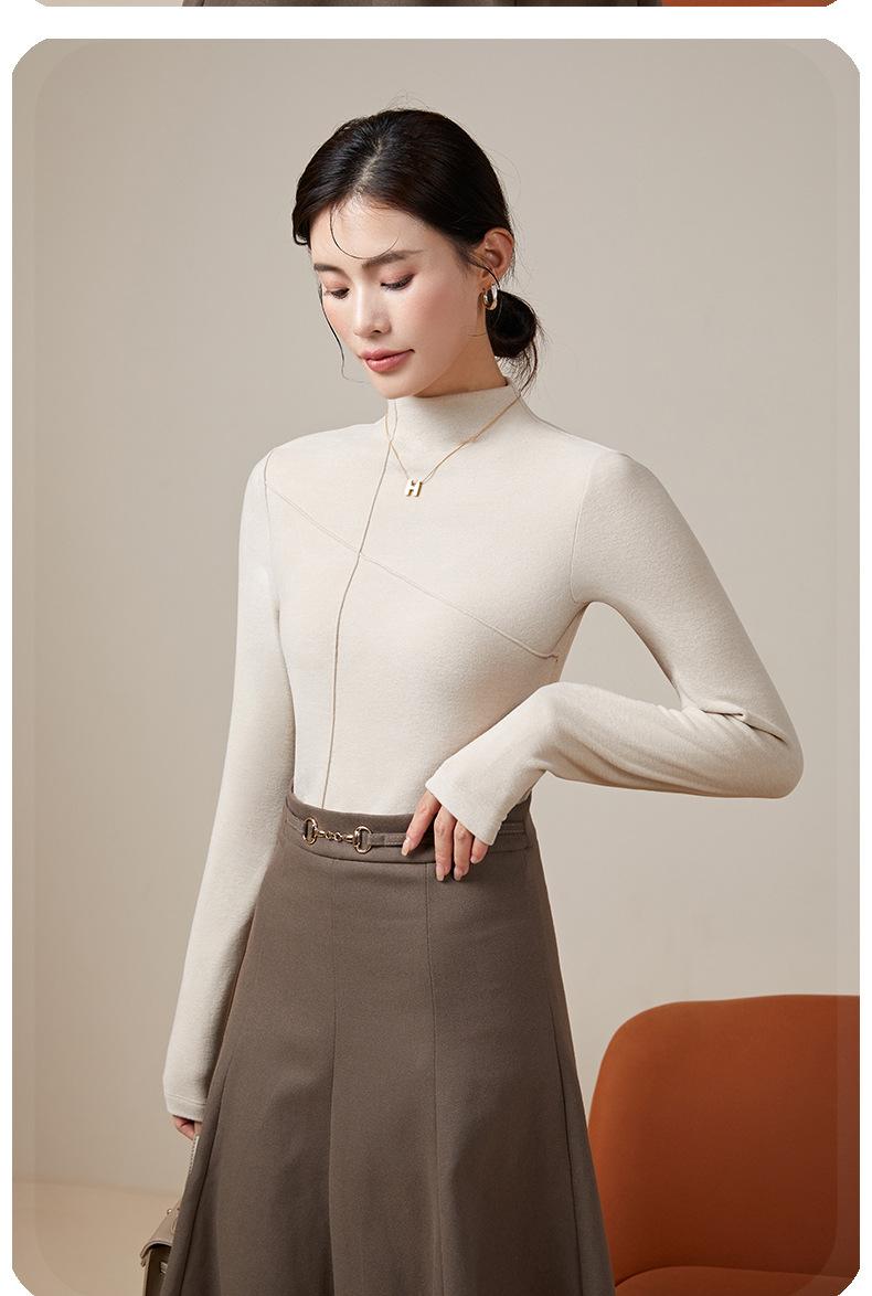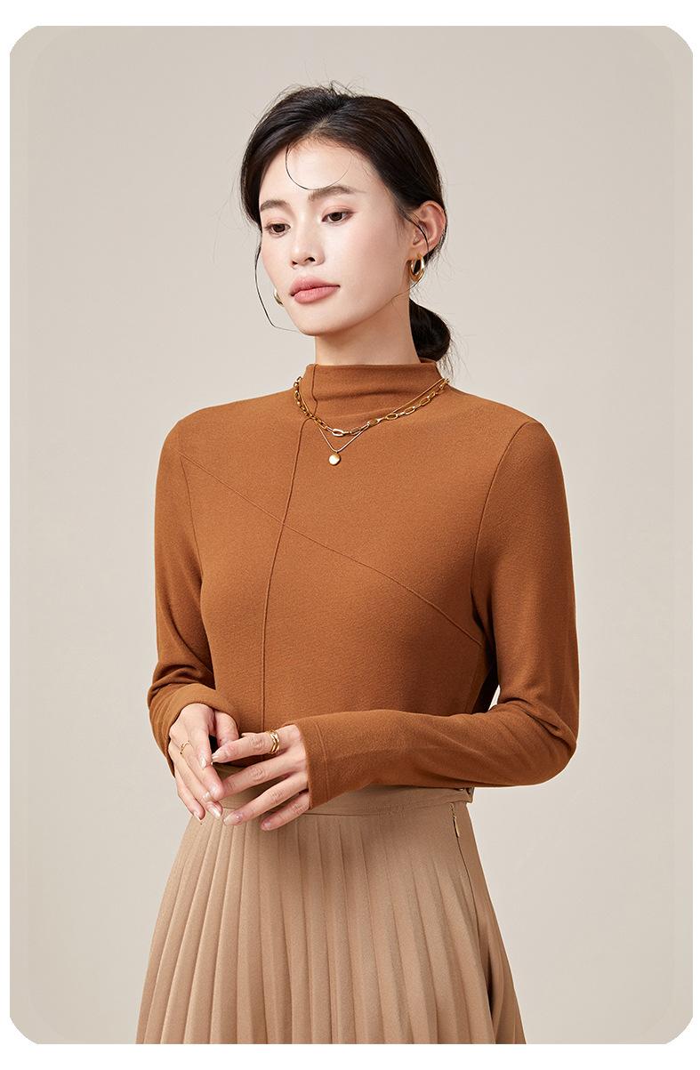 Feminino novo de Velvet quente manga comprida top gola rolê manga comprida camisa de manga comprida roupa exterior quente outono e inverno meia gola tartaruga