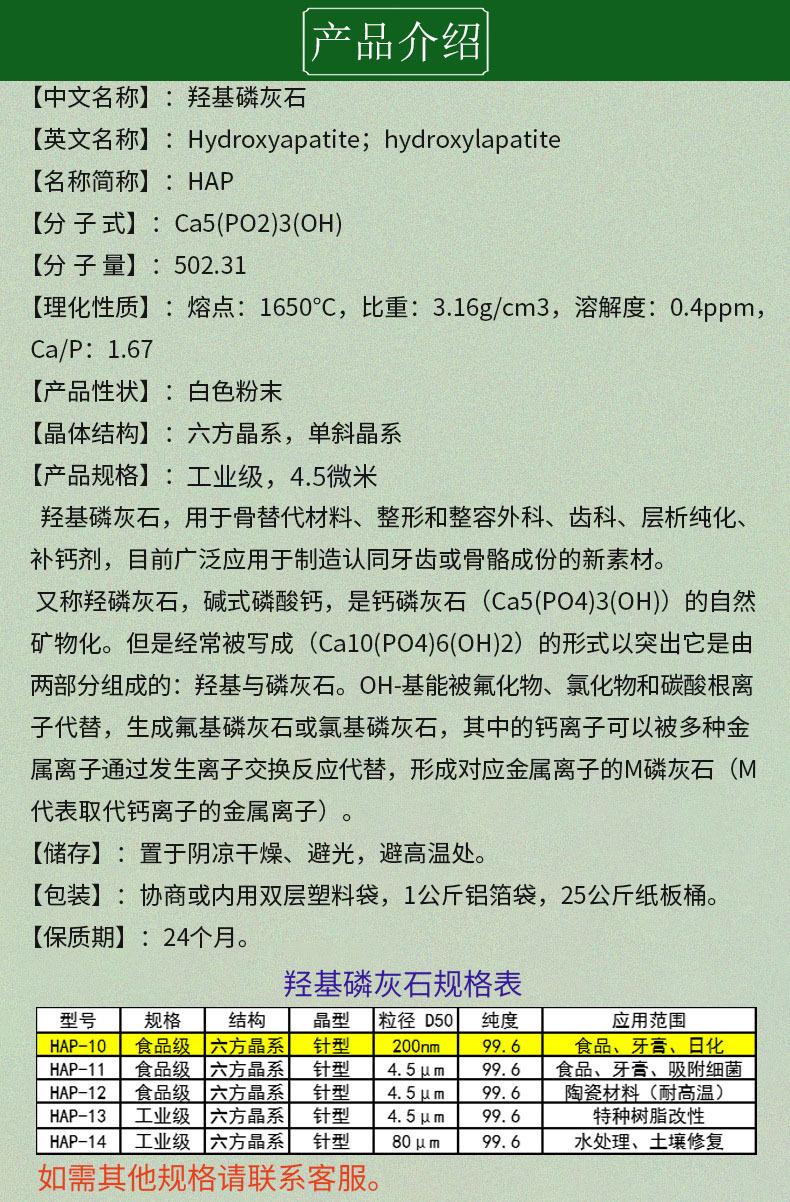 Hidroxiapatita 99,6% 4,5 mícrons (HAP) Grau alimentício / fosfato de cálcio básico de grau industrial