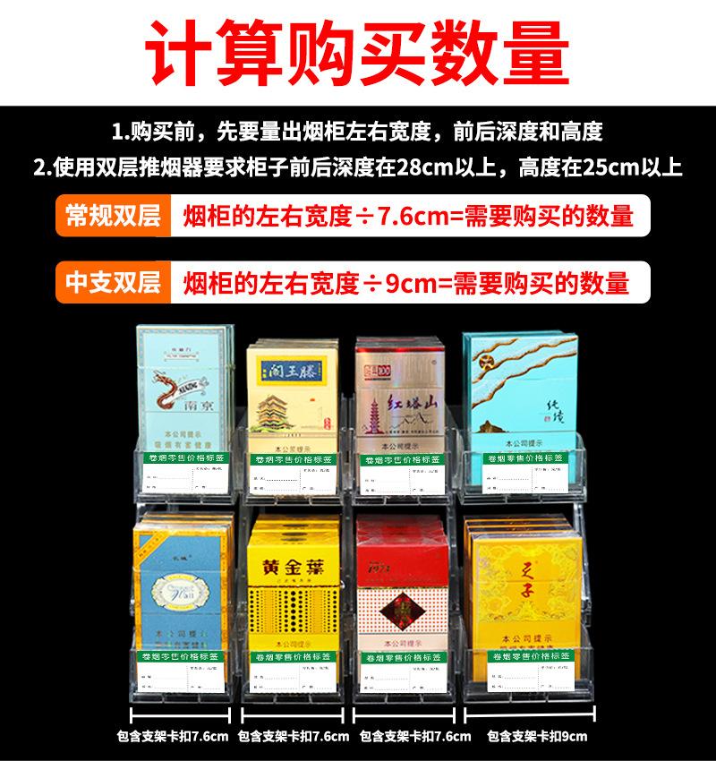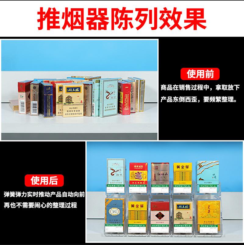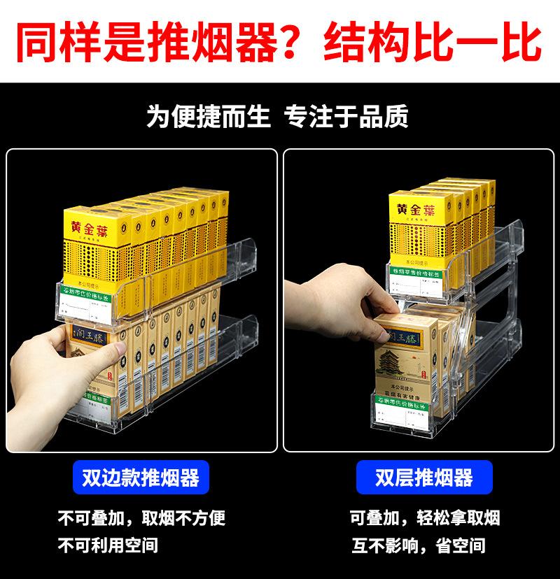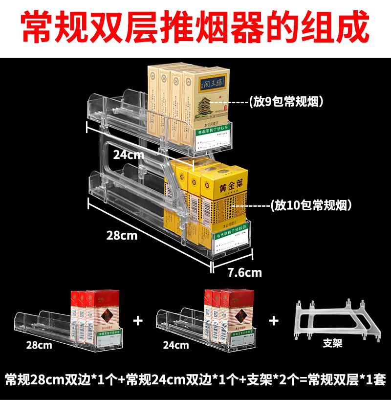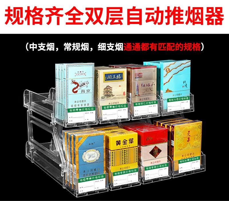 Empurrador de cigarros por atacado, empurrador de cigarros de camada dupla, automático, pop-up, push-pull, prateleira de exposição de cigarros de supermercado, empurrador de cigarros do meio
