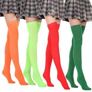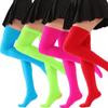 | Meias fluorescentes amarelas sólidas acima do joelho, meias altas empilhadas, meias para dança, maquiagem, performance, cosplay, festival |