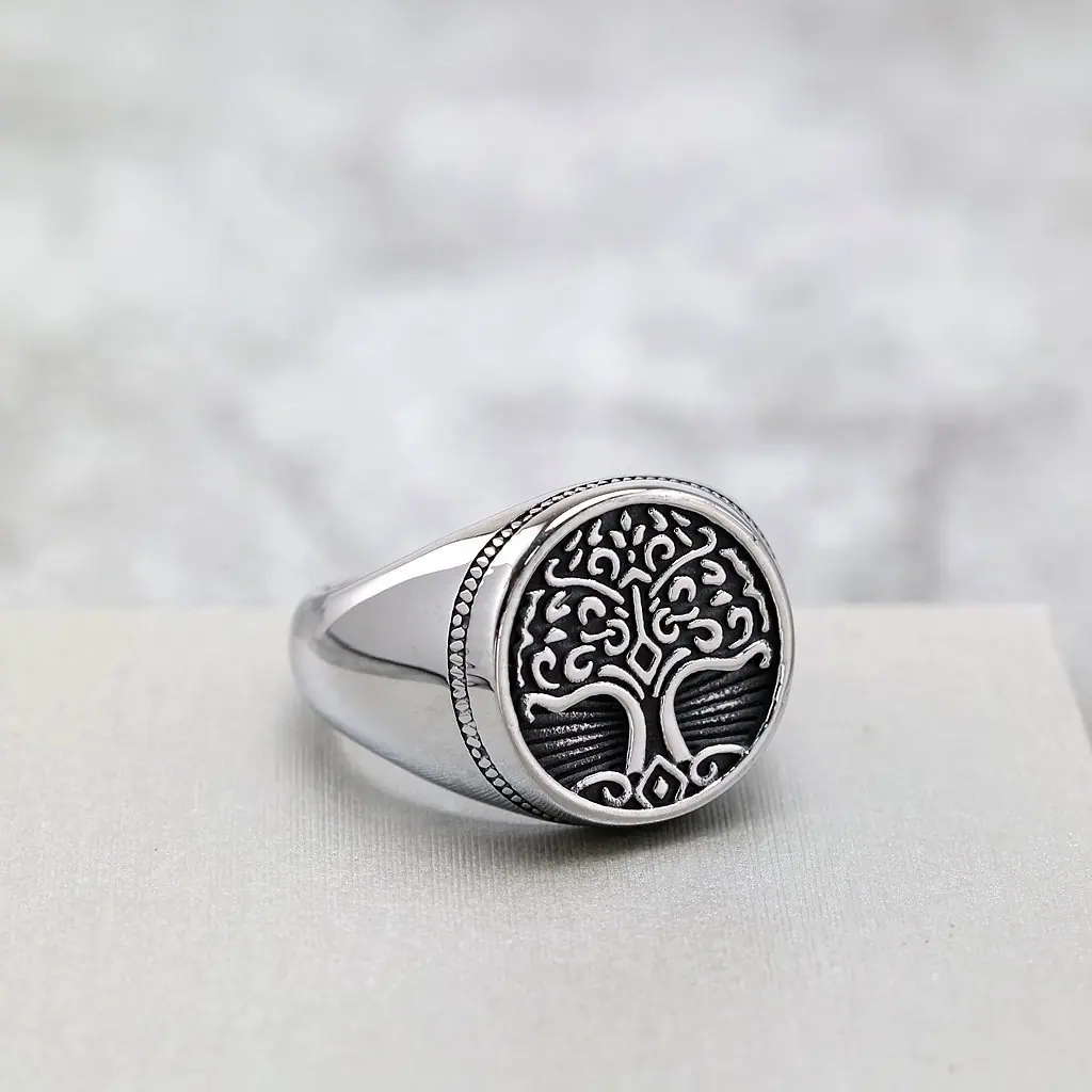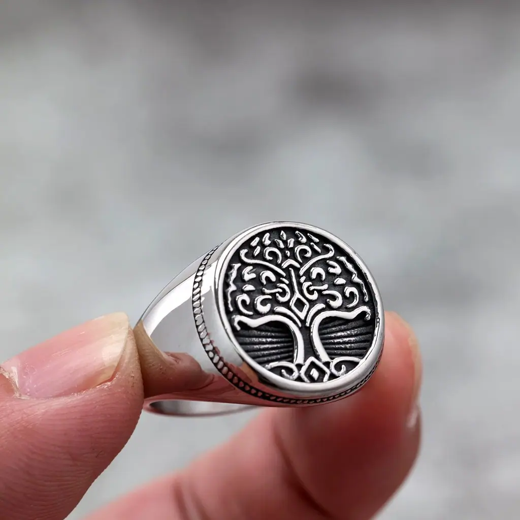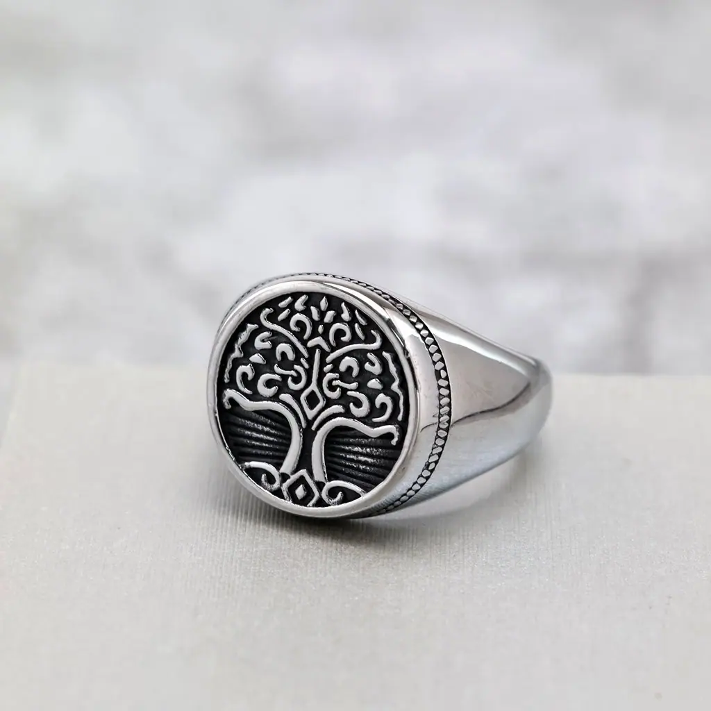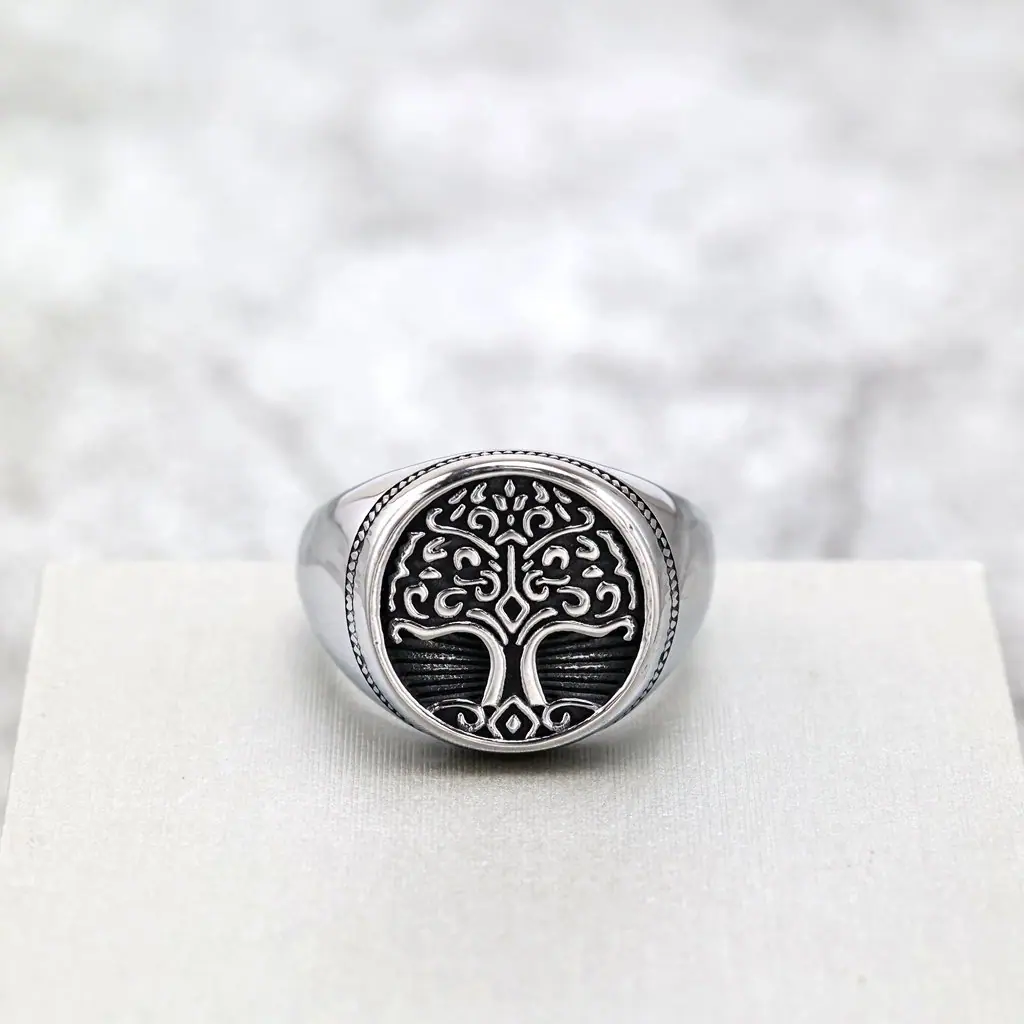 Anel Retrô de Aço Inoxidável Adequado para Homens e Mulheres, Anel Sólido Brilhante Árvore da Vida
