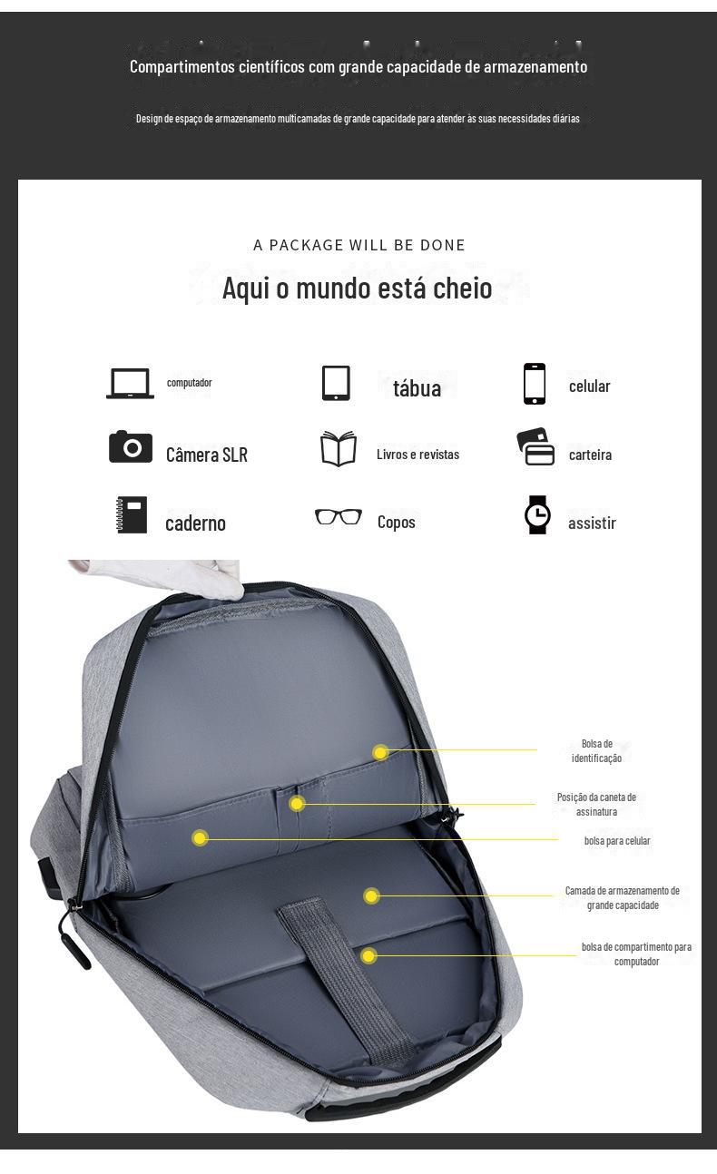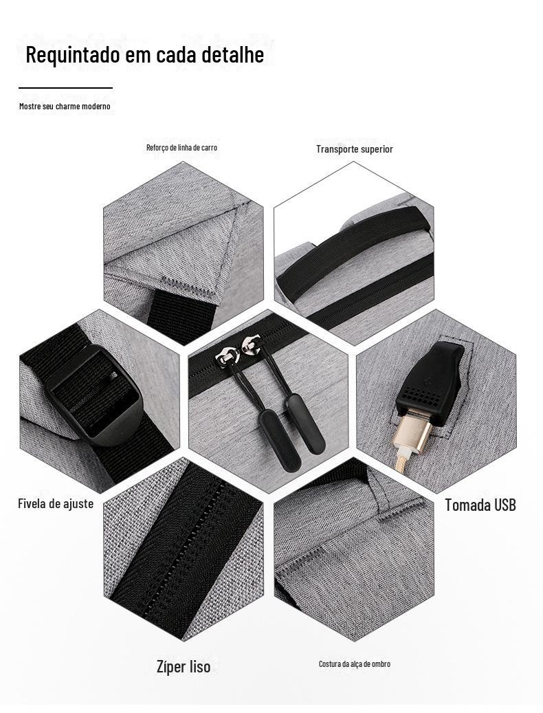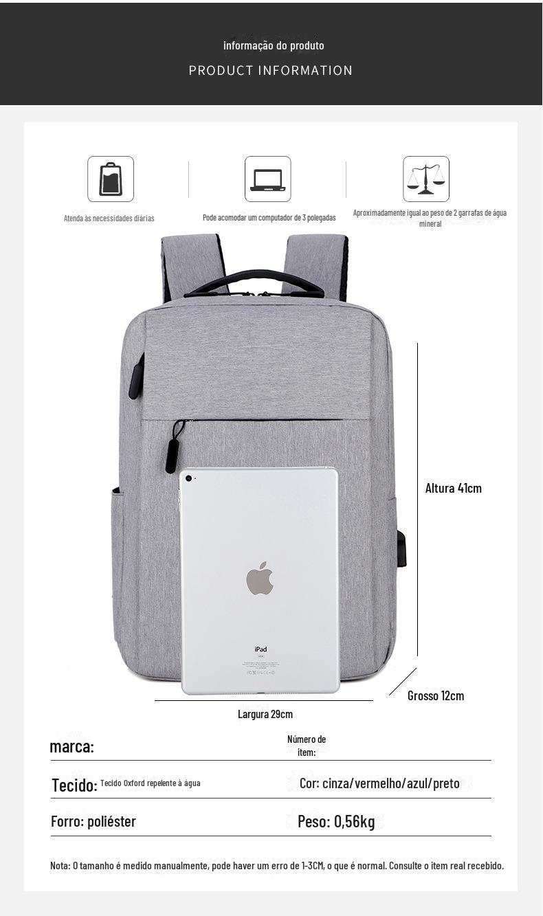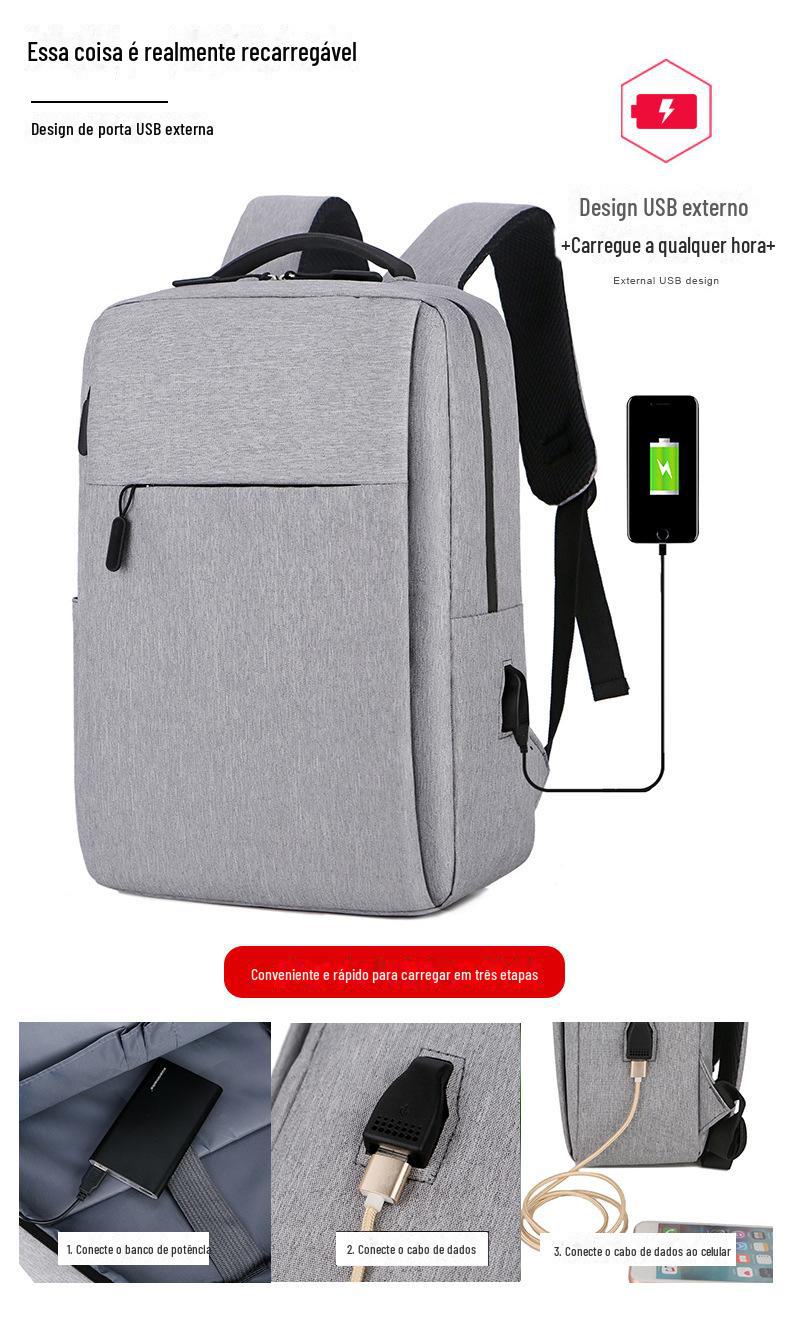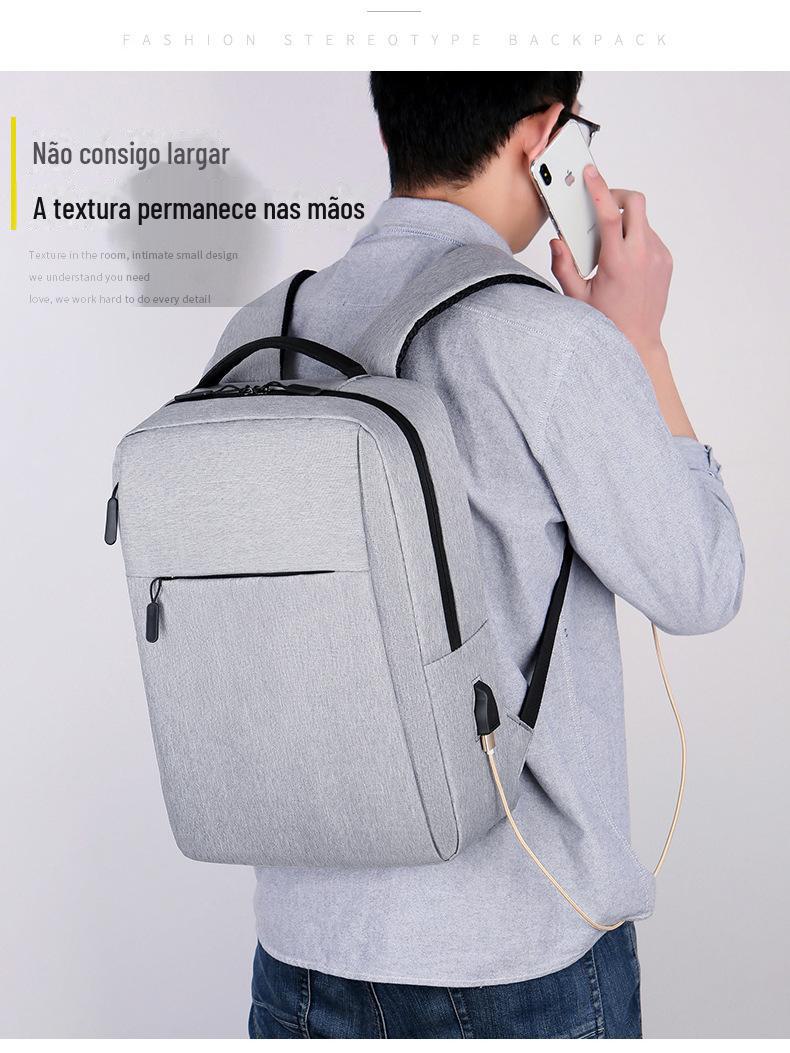 Mochila para laptop cross-border, simples, grande capacidade, impressão, bolsa para computador empresarial, mochila com carregamento USB, atacado