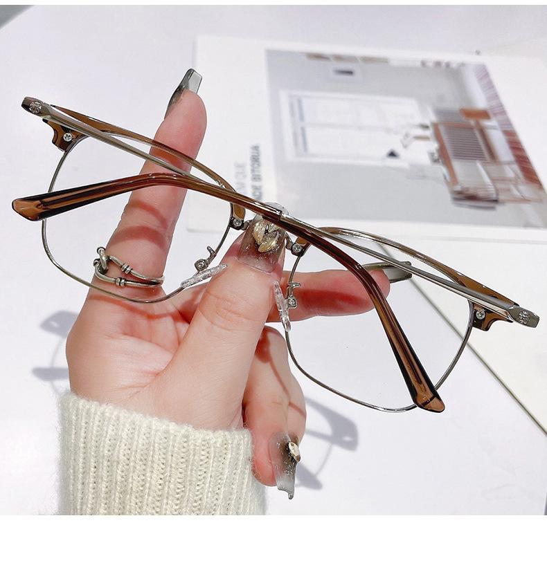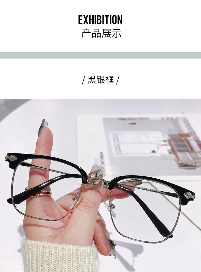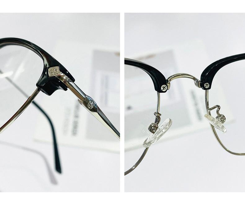 Armação de óculos preta meia armação masculina rosto grande lente miopia retro Tech armação de óculos linha sobrancelha masculina