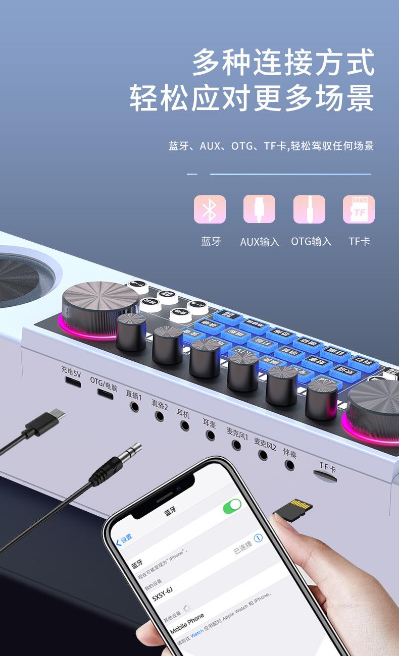 Xia Xin Live Broadcast Placa de Som Bluetooth Audio KTV Outdoor Singing Computador Gravação Microfone Microfone Equipamento All-in-One Machine