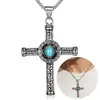 Europeu e Americano Retro Azul Turquesa Cruz Colar Cross-border Hip-hop Moda Diamante Jóias Pingente para Homens e Mulheres