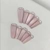 Tiro real usar unha feita à mão manicure terminou mancha de unha falsa outono e inverno avançado pura menina quente rosa perseguindo olho de gato