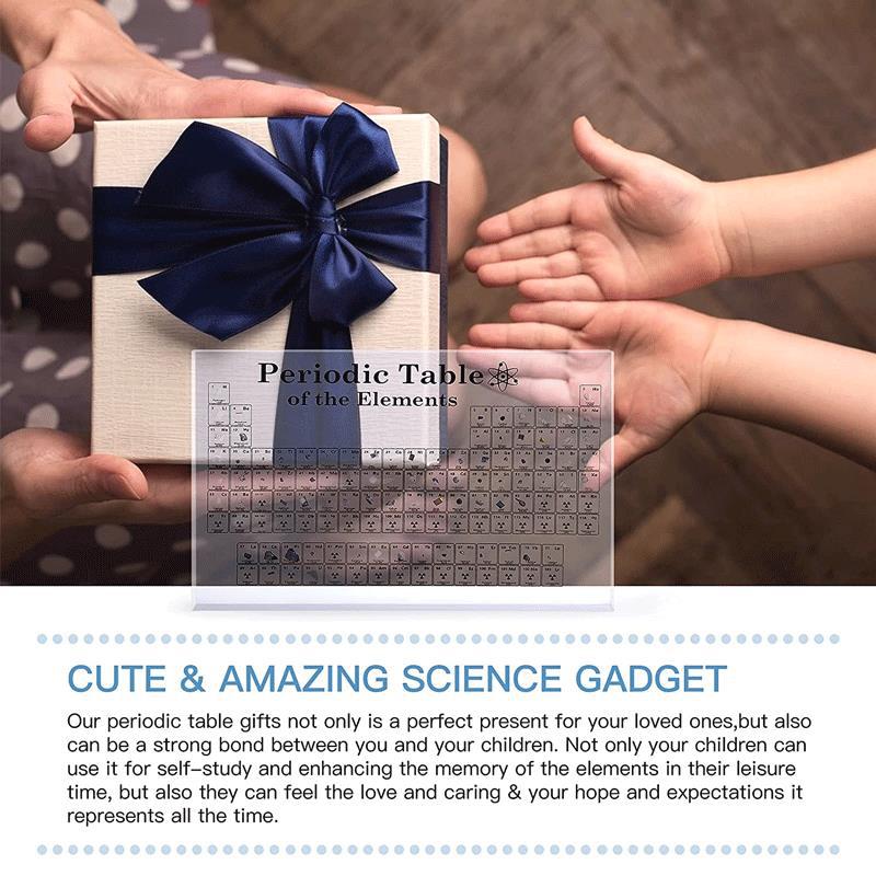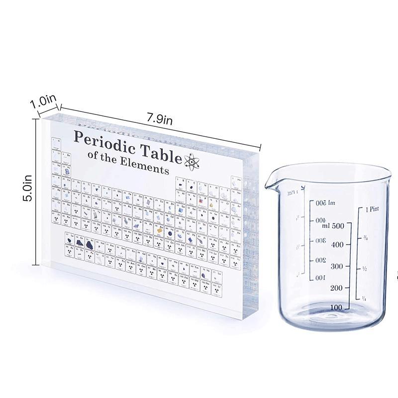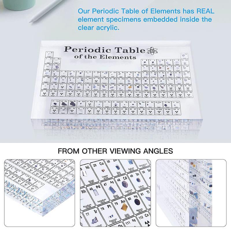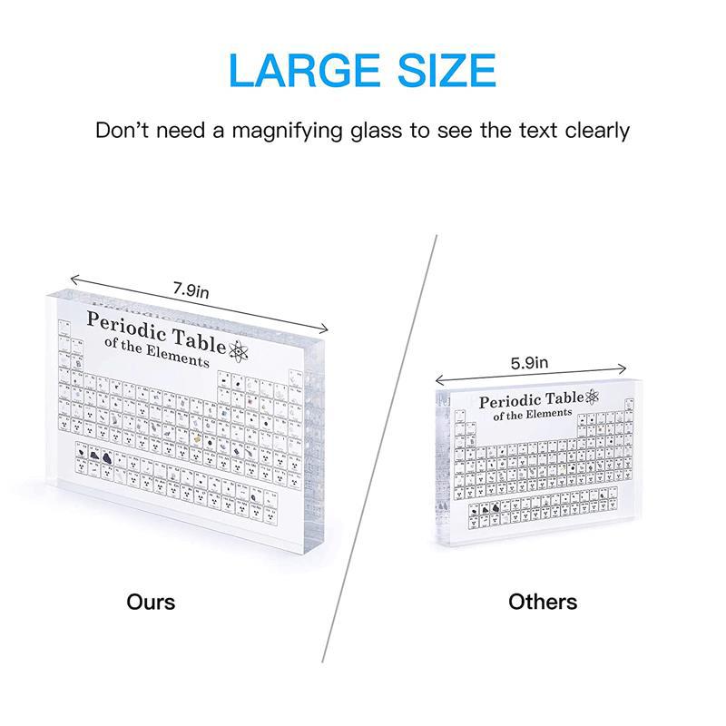 Tamanho ampliado atualizado transparente [grande 200X125X24MM] Tabela periódica de acrílico transparente contém elementos reais tabela de elementos químicos de tamanho ampliado amostra real artesanato embutido enfeites de mesa