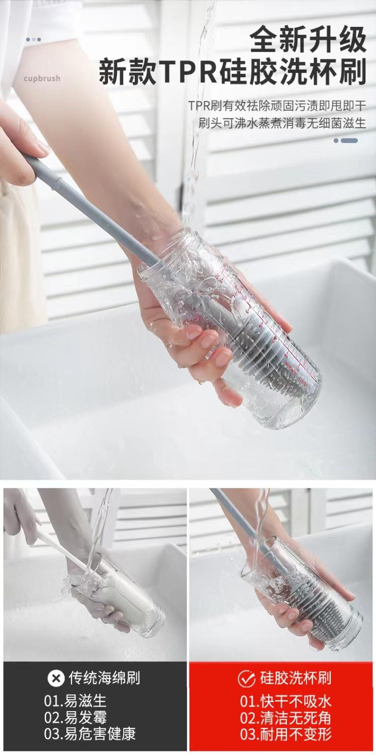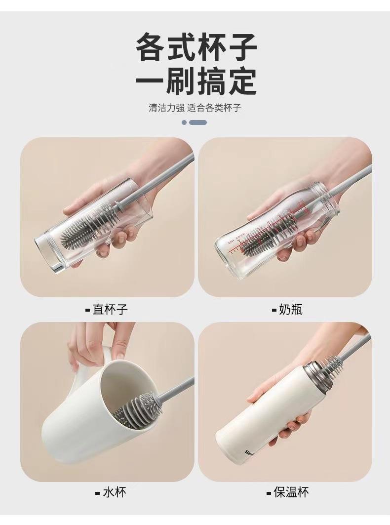 360 graus Copo artefato de lavagem Escova rotativa Copo alimentação garrafa escova longa alça lacuna Copo lavagem artefato escova de silicone integrada