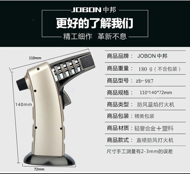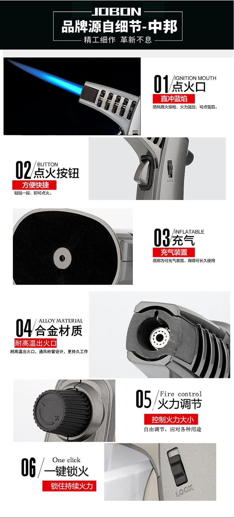 Zhongbang Direct Rush Arma de chama mais leve com bloqueio de fogo grande poder de fogo inflável de grande capacidade azul ignitor de chama à prova de vento