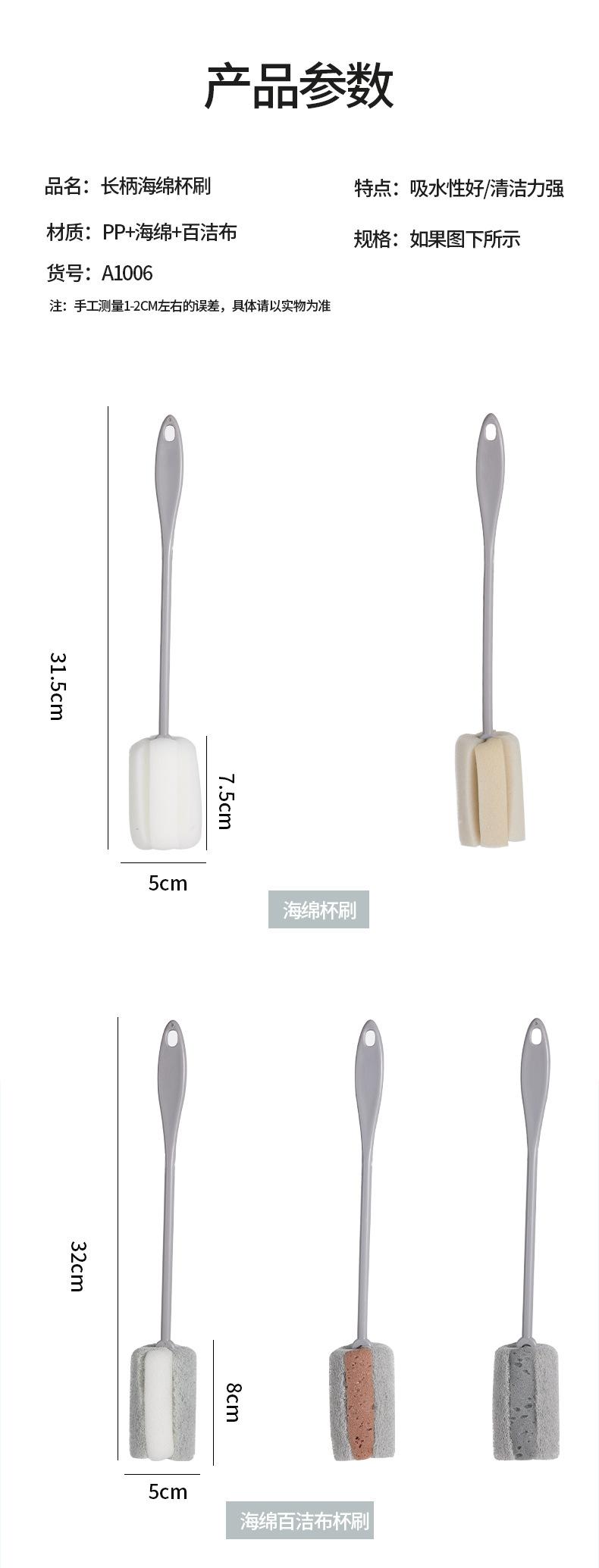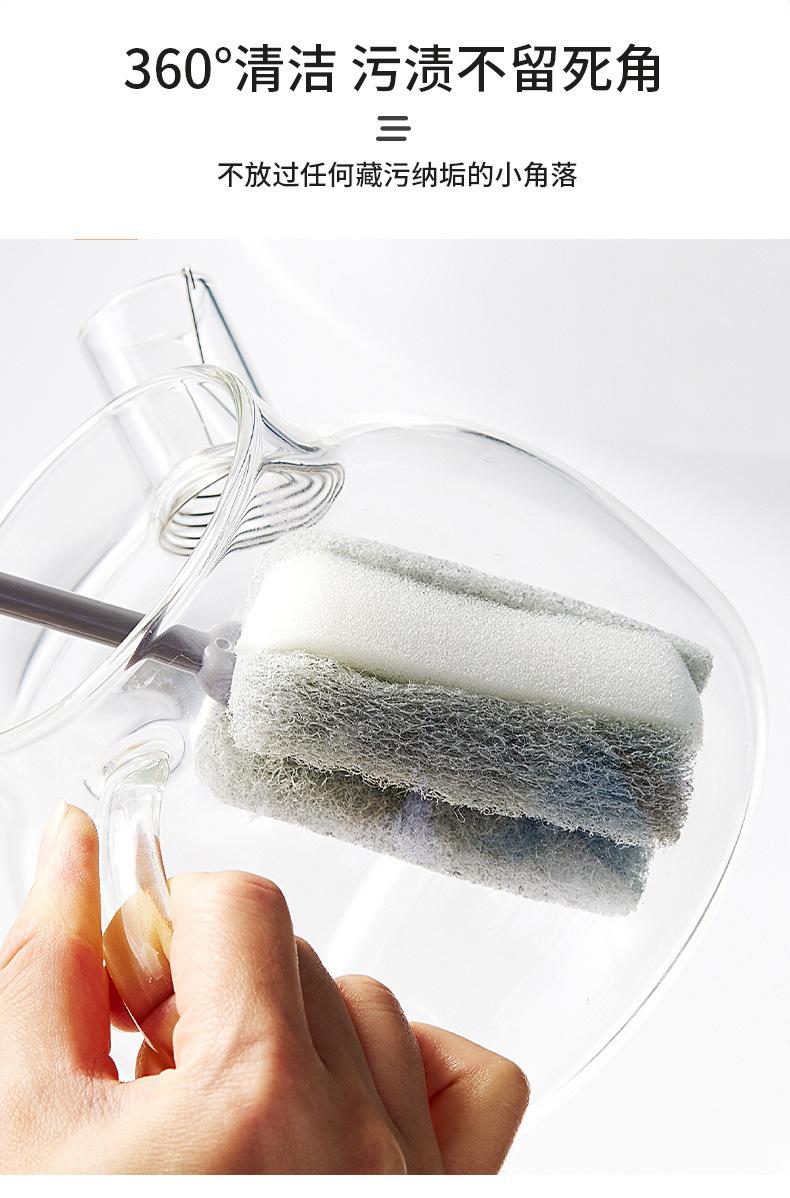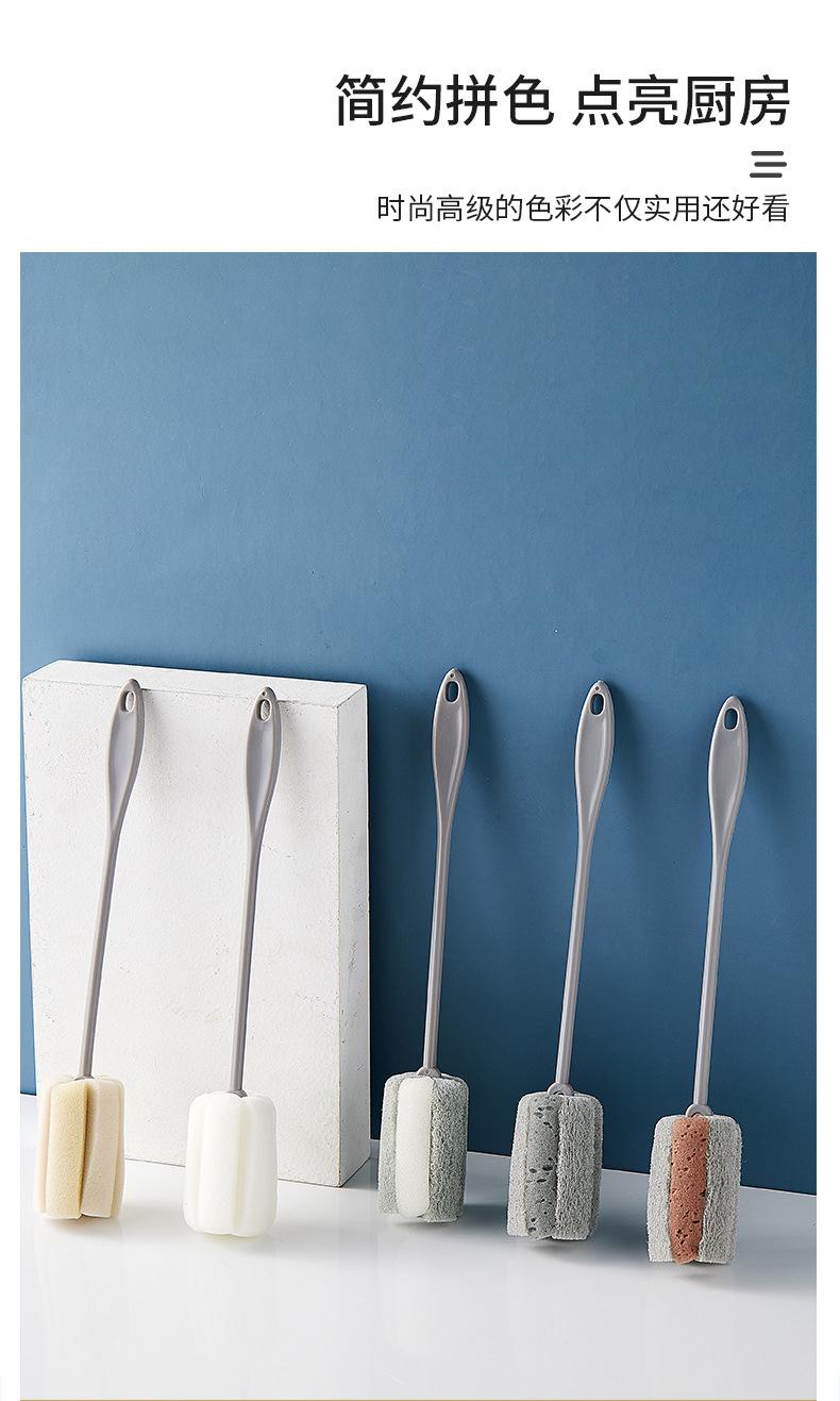 Escova de limpeza de esponja de alça longa transfronteiriça sem ângulo morto almofada de limpeza escova escova garrafa de leite escova copo de água artefato de limpeza