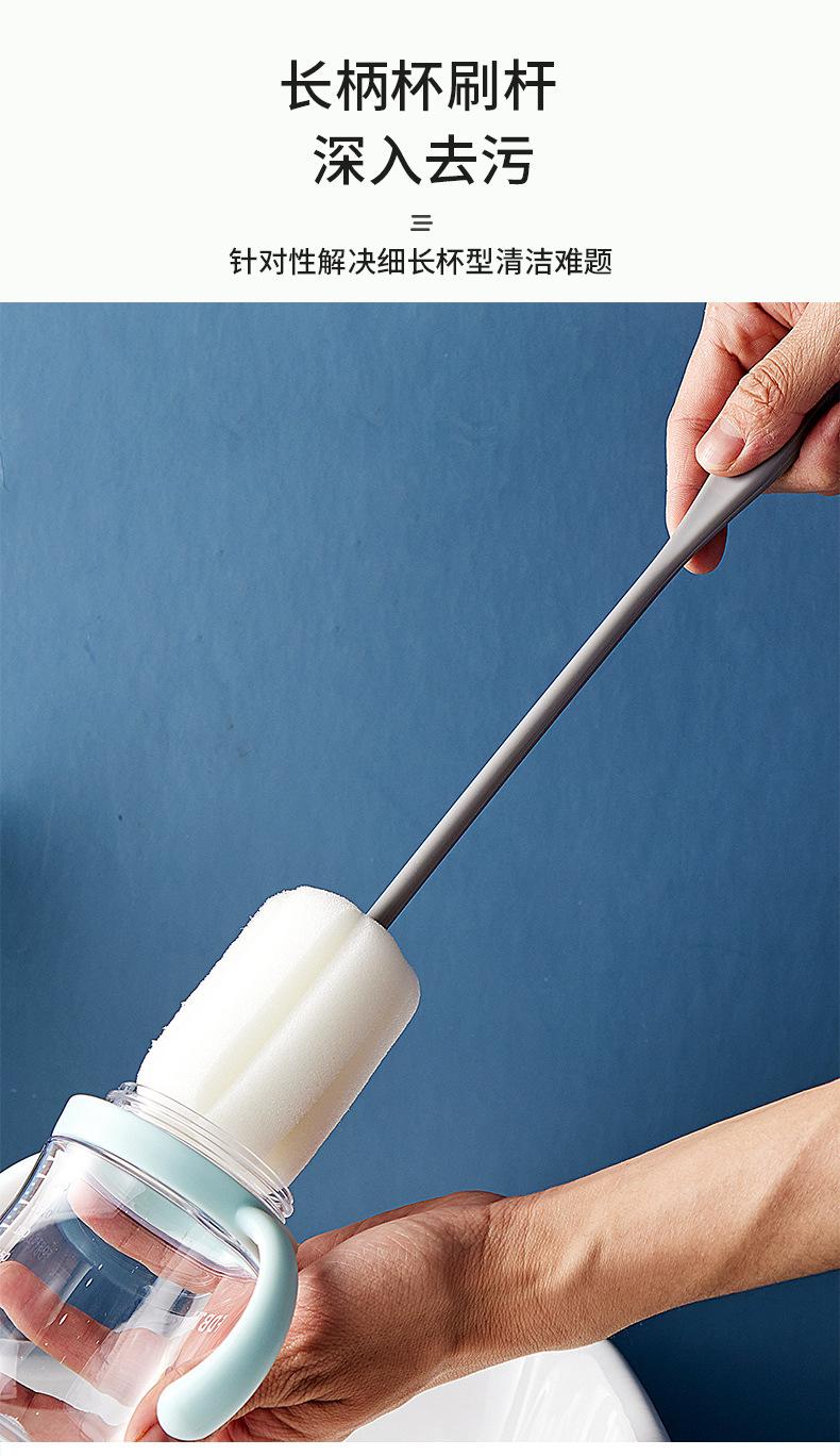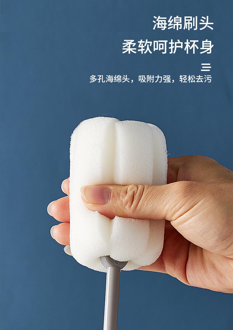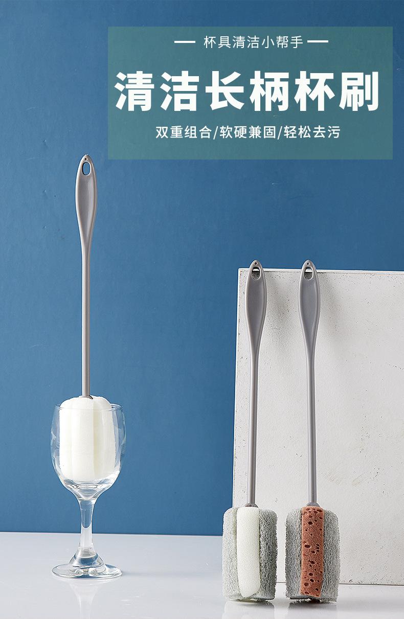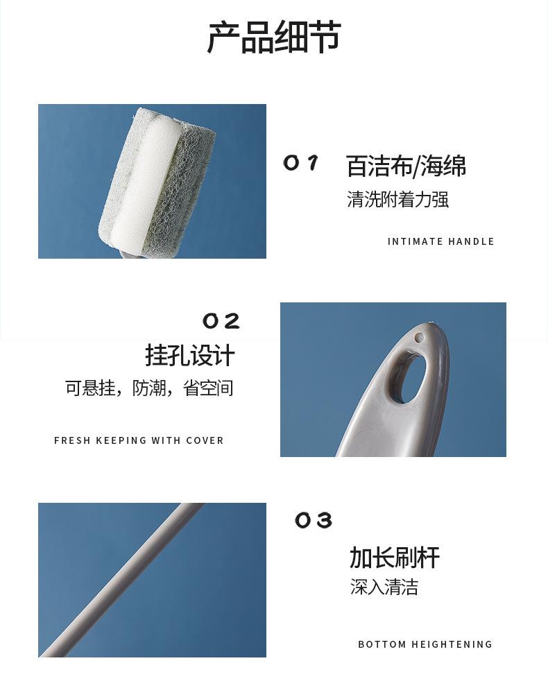 Escova de limpeza de esponja de alça longa transfronteiriça sem ângulo morto almofada de limpeza escova escova garrafa de leite escova copo de água artefato de limpeza