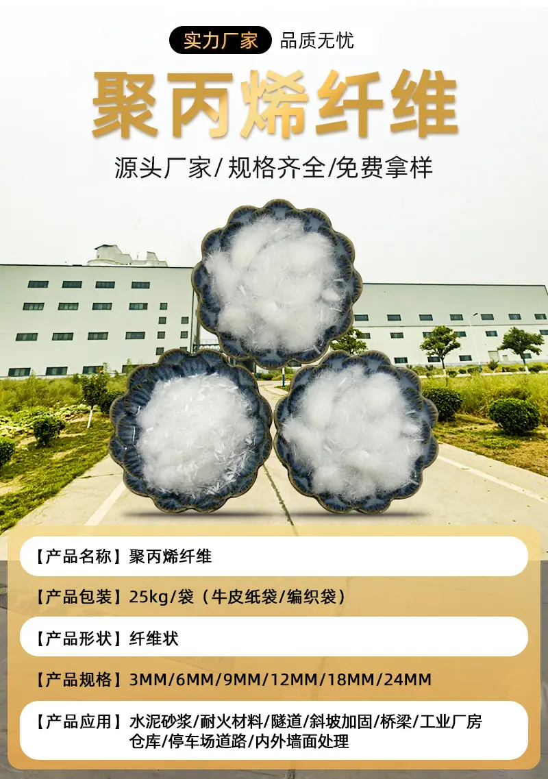 Fibra de polipropileno 3mm-9mm de concreto argamassa resistente a rachaduras fibra de polipropileno fibra de vidro fibra de engenharia