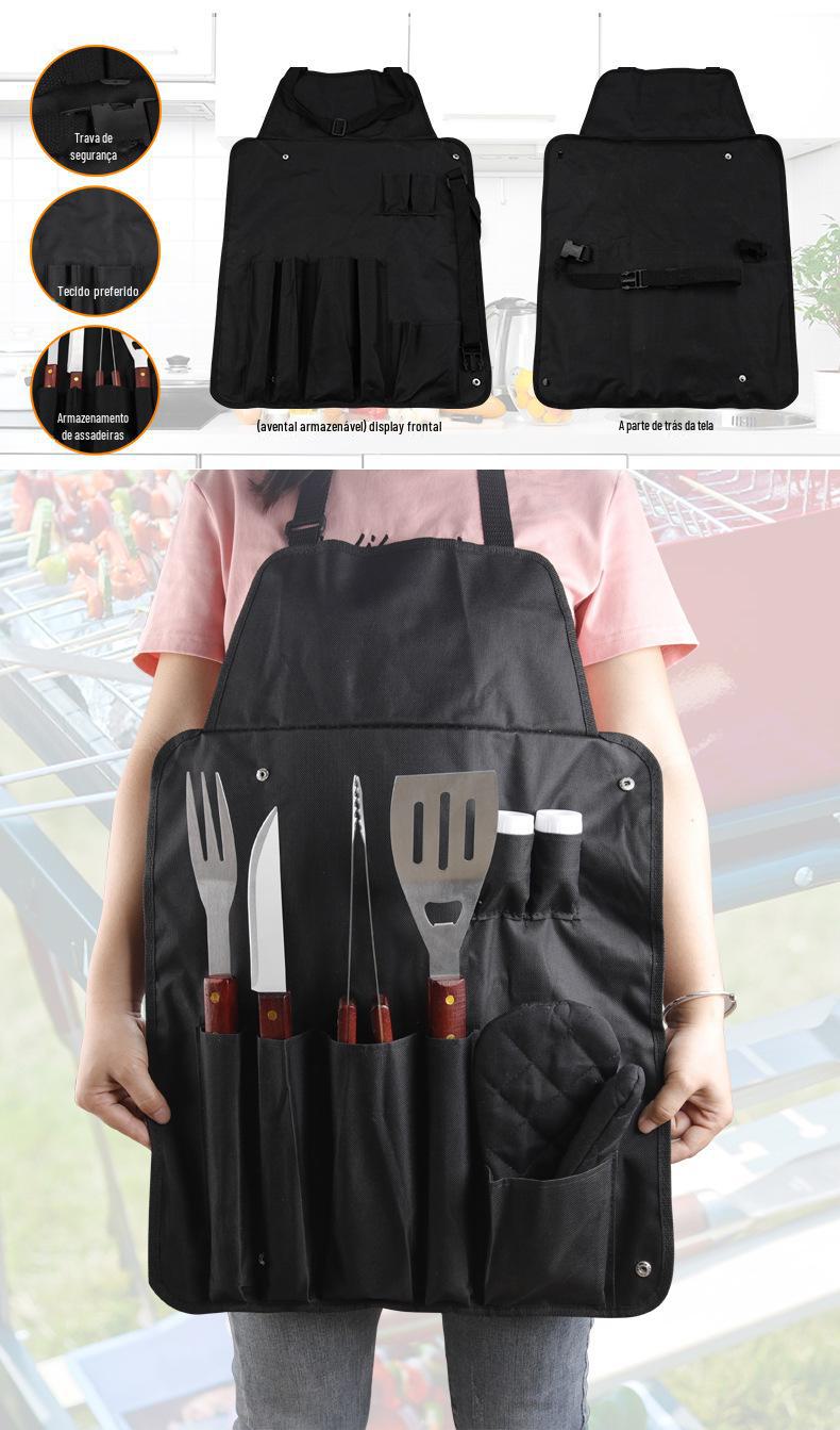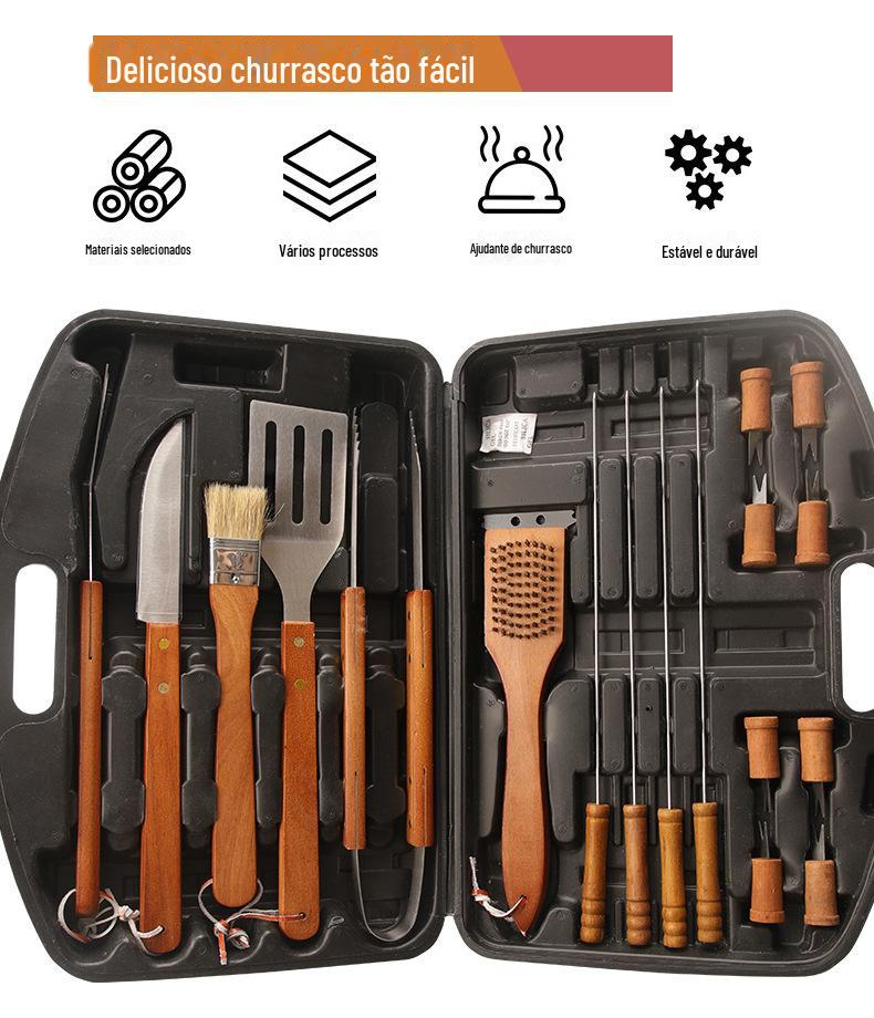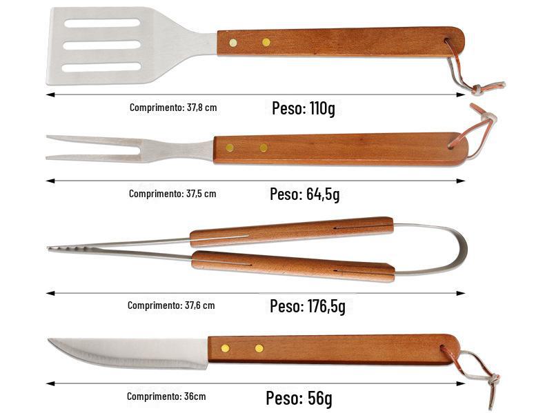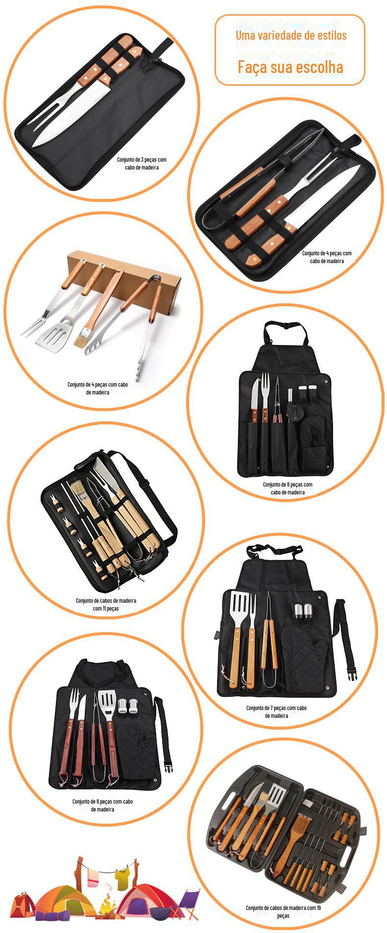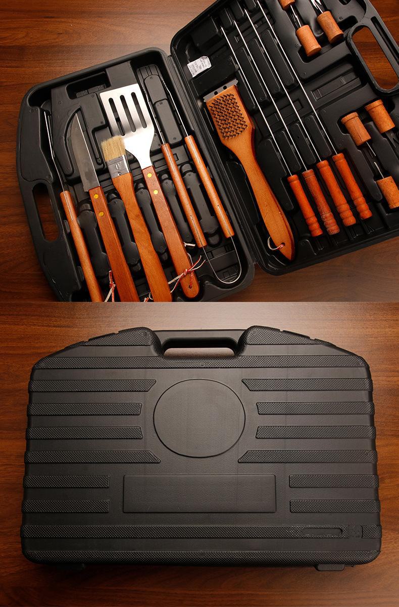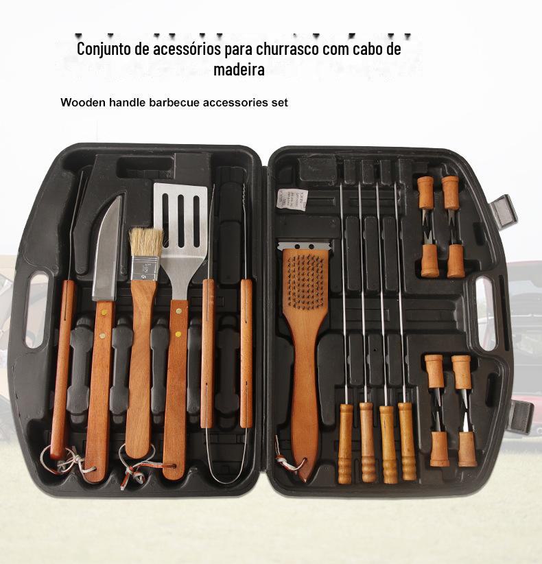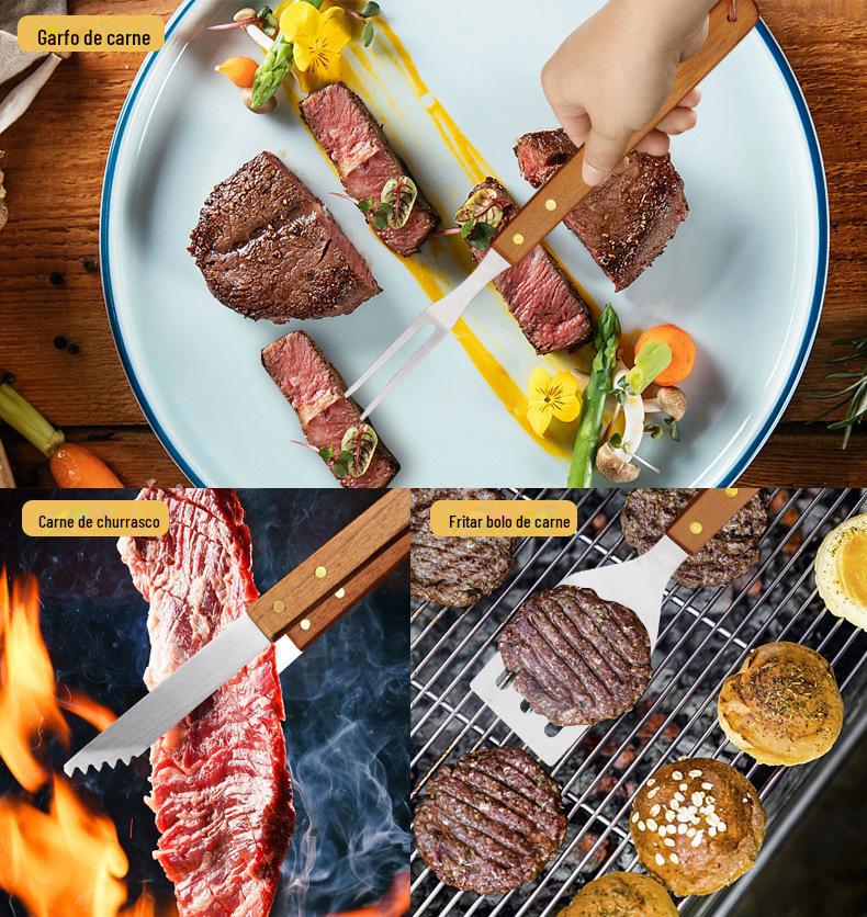 Amazon ao ar livre de aço inoxidável churrasco ferramentas terno fabricantes churrasco madeira punho garfo pá clipe combinação barbecue ferramentas terno