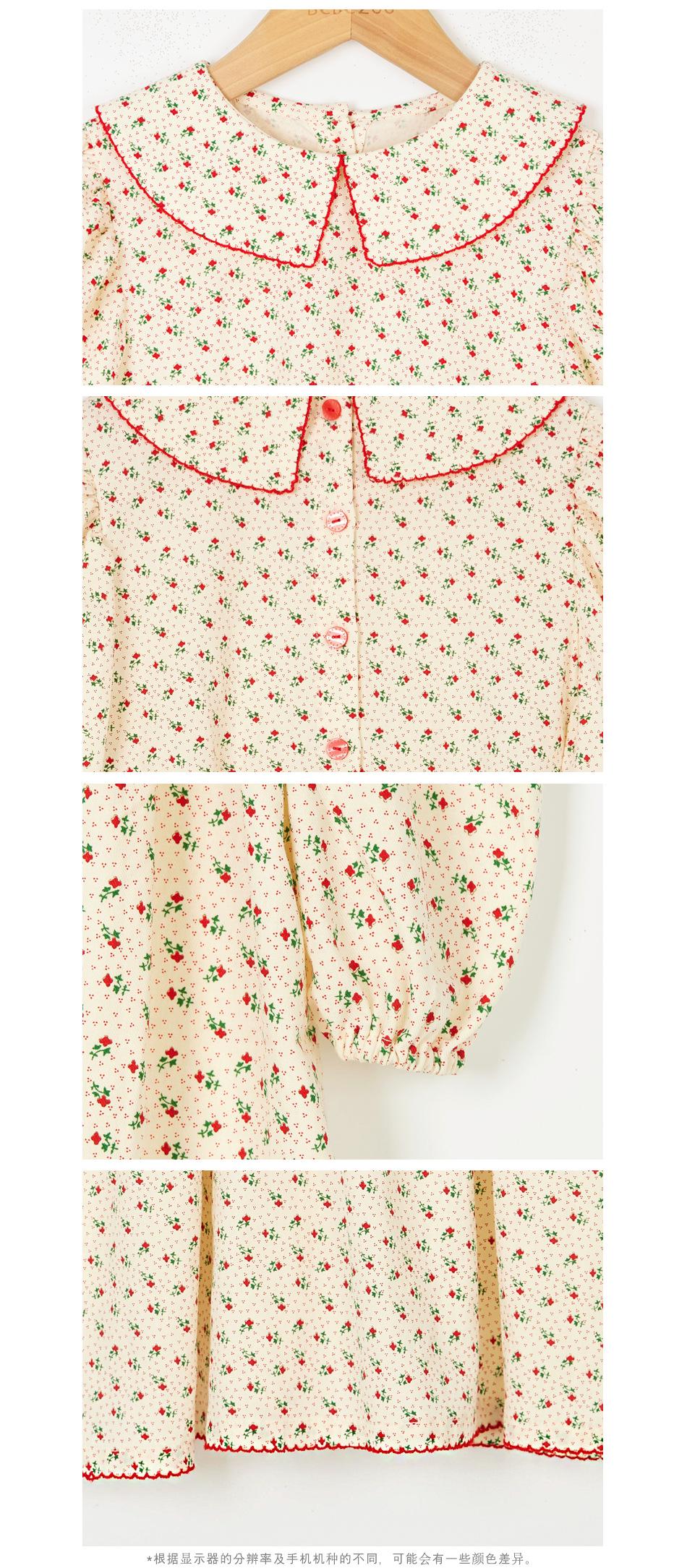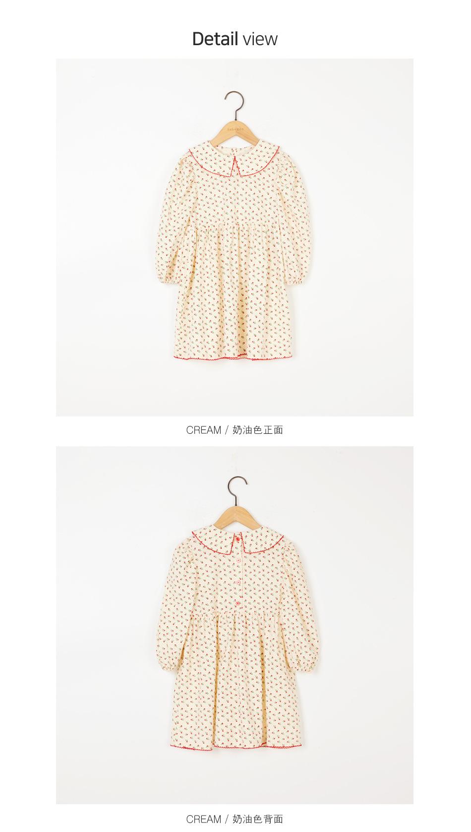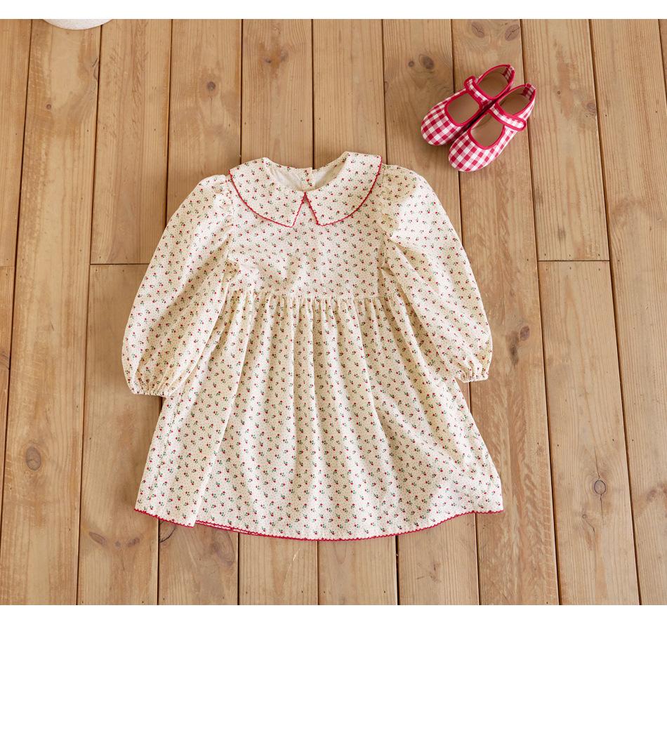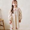 Outono 2022 Novo Vestido Coreano para Crianças de Mangas Longas com Gola de Lótus e Estampa Floral Vestido Longo Infantil Solto