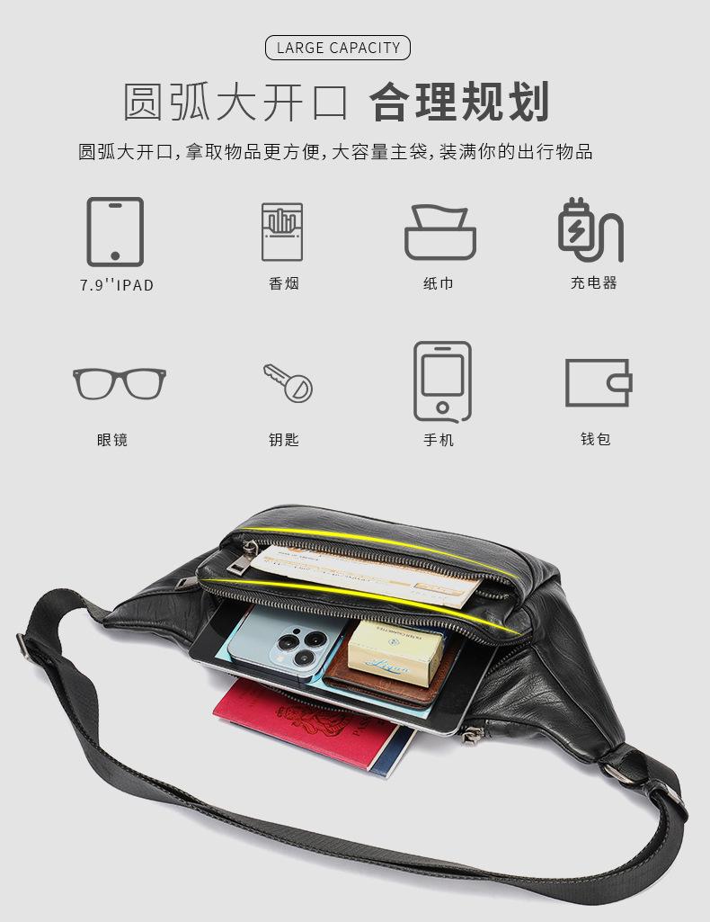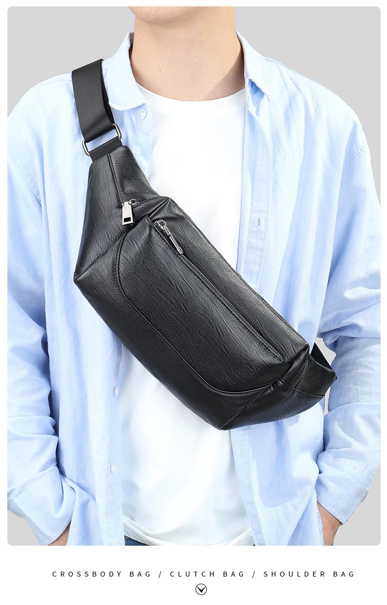 Nova bolsa de cintura de couro genuíno masculina elegante versátil pele de carneiro à prova d'água bolsa de ombro masculina bolsa de peito multifuncional bolsa crossbody masculina