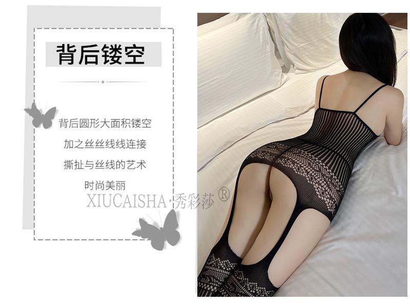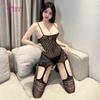 Lingerie sexy peça única meias tentação perspectiva paixão suspensórios seda preta cama quente sem roupa sexy plus size