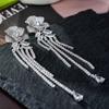 Brincos de Zircônia de Luxo Longo Brincos de Flor Tassel Acessórios de Orelha Estilo Coreano Internet Celebridade Moda Brincos Elegantes