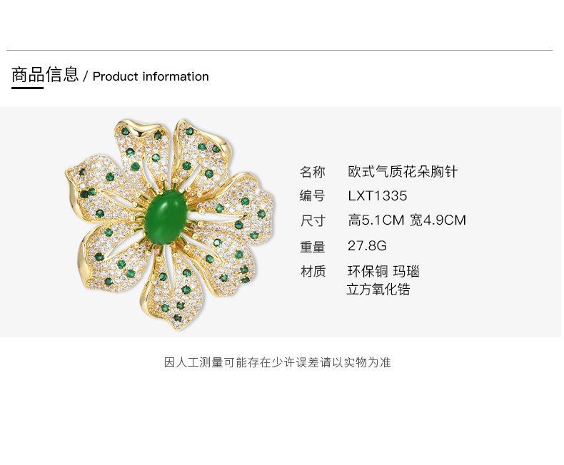 Estilo europeu elegante design de alta qualidade ágata verde elegante clássico clássico revestimento de flores acessórios broche anti-exposição