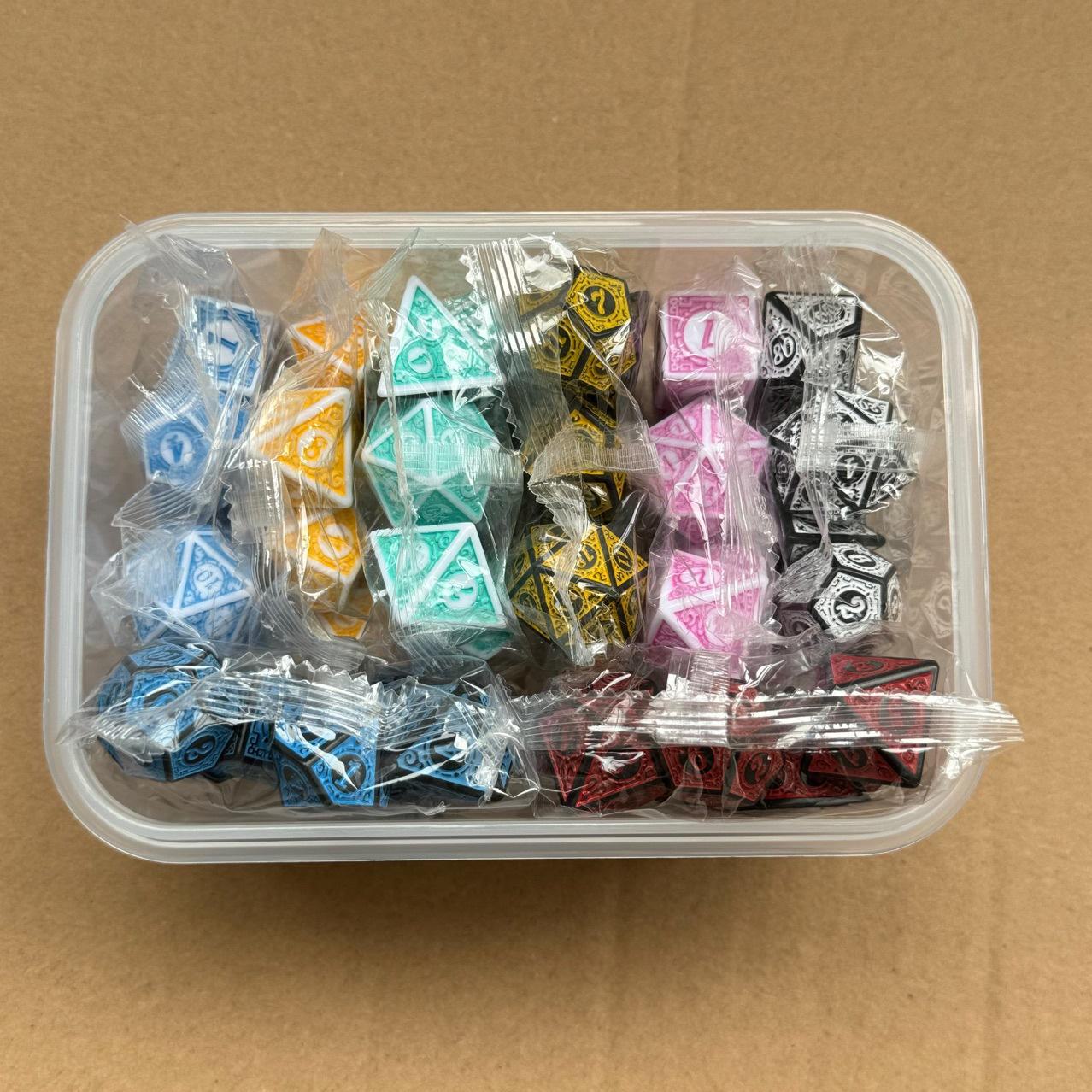 Nome: dados de jogo Dungeons & Dragons multifacetados com padrão antigo de combinação de 8 cores (7*8 cores 56 por caixa)