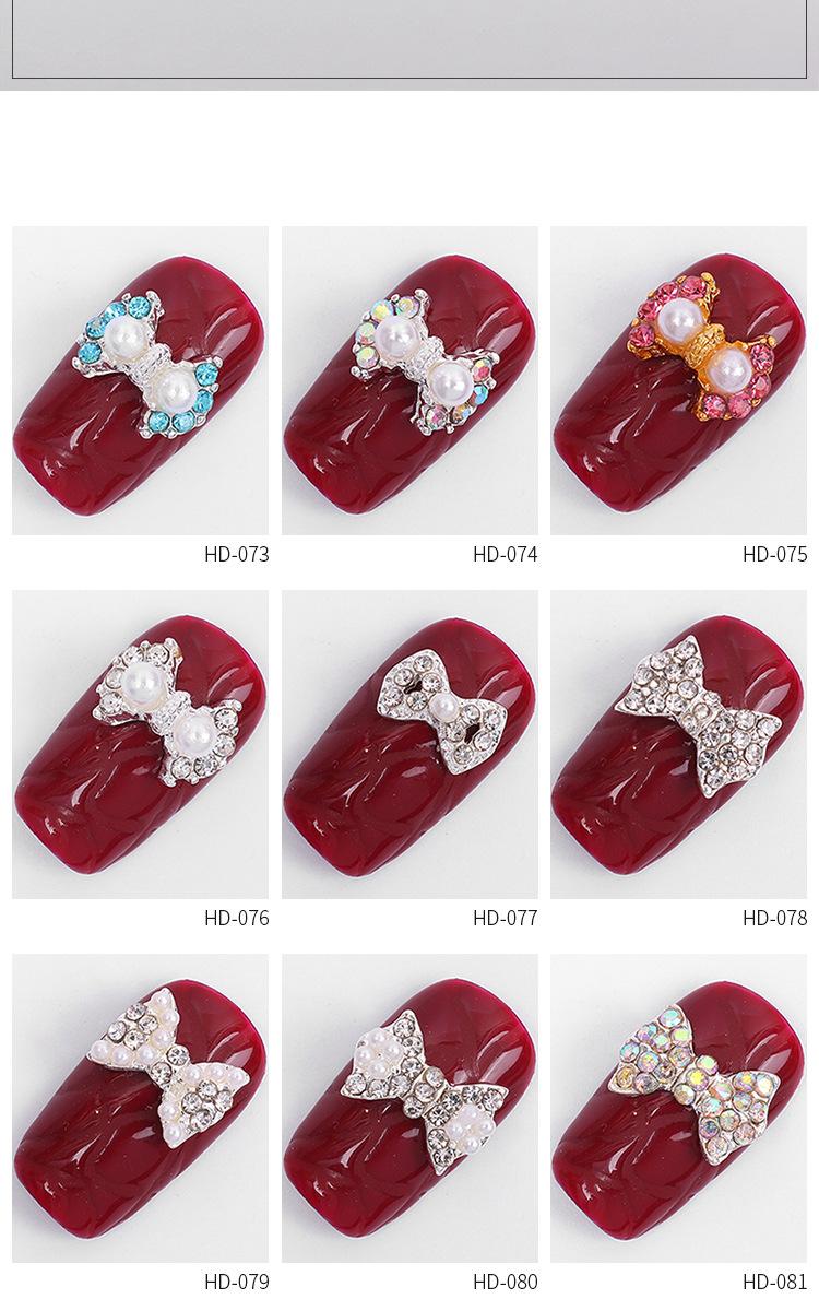 Nail art joias atacado arco nail art liga joias pérola diamante laço unha unha broca HD-073