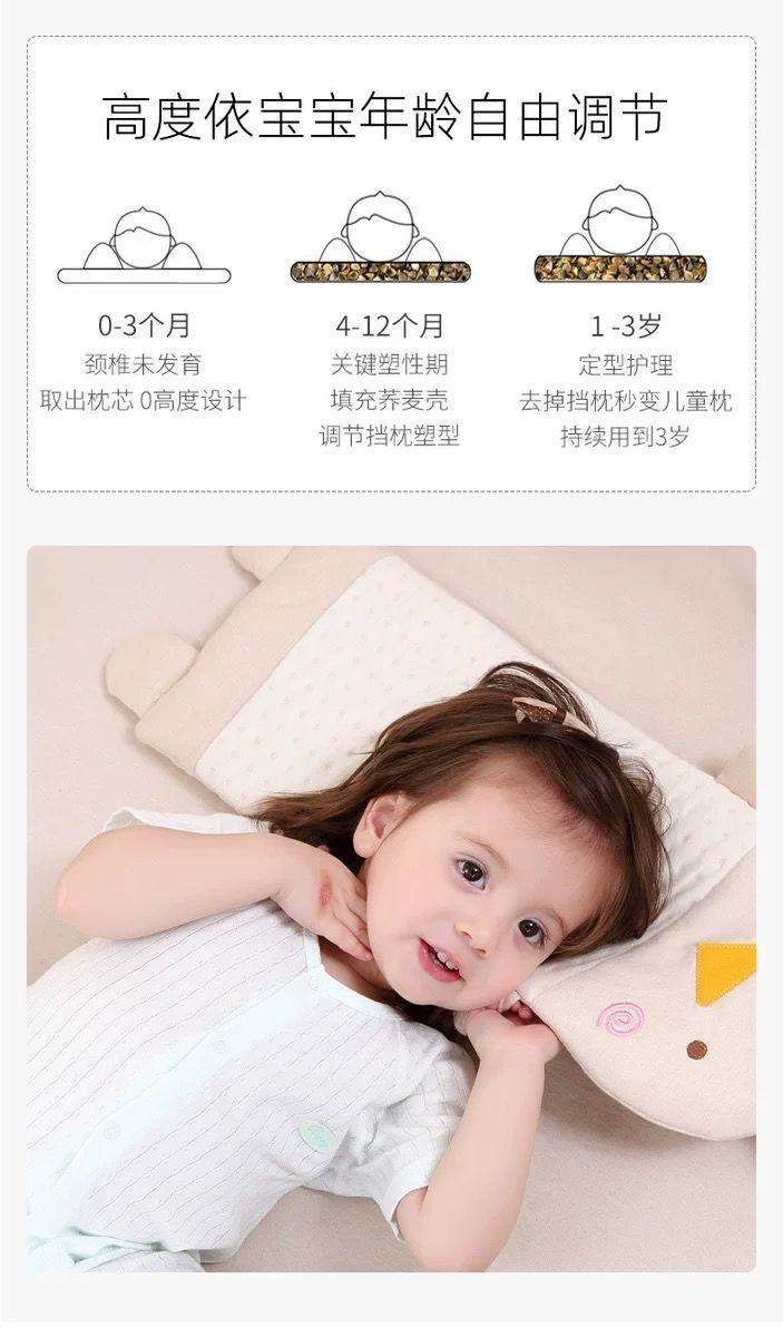 [Liquidação especial] Travesseiro anti-mofo de trigo sarraceno para bebê, travesseiro respirável para cabeça correta para bebê