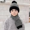 9833 Chapéu Infantil de Outono e Inverno Transfronteiriço para Bebês Meninos, Chapéu de Tricô, Cachecol, Conjunto de Chapéu de Tricô Europeu e Americano para Meninas, Quente