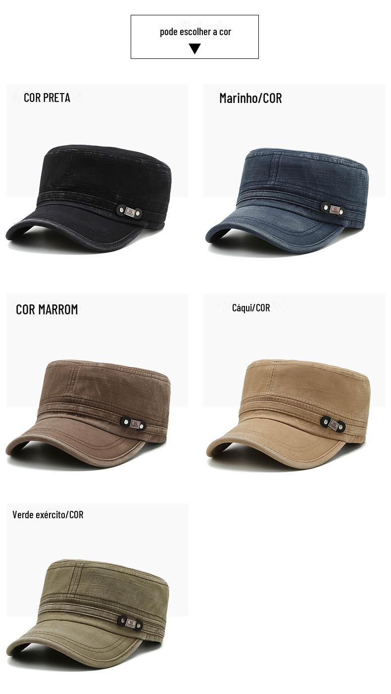 Chapéu Masculino Outdoor Flat Top Chapéu Militar Primavera e Outono Sunshade Sun Hat Coreano All-match Casual Baseball Cap Cap
