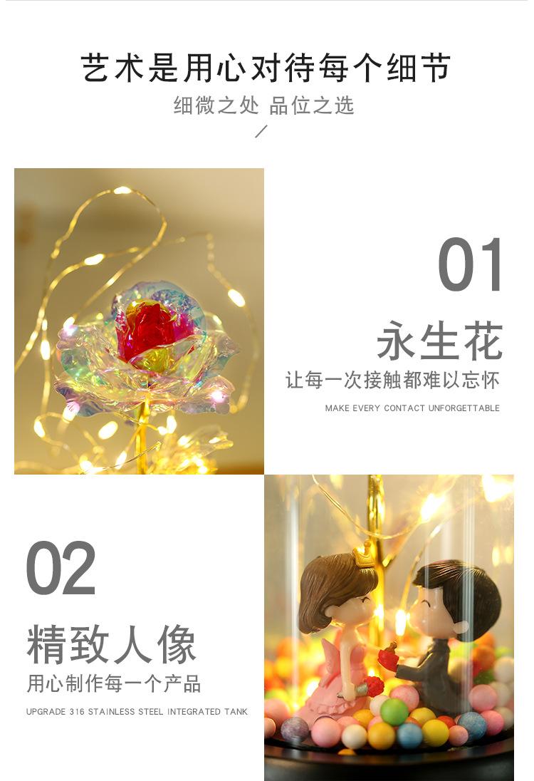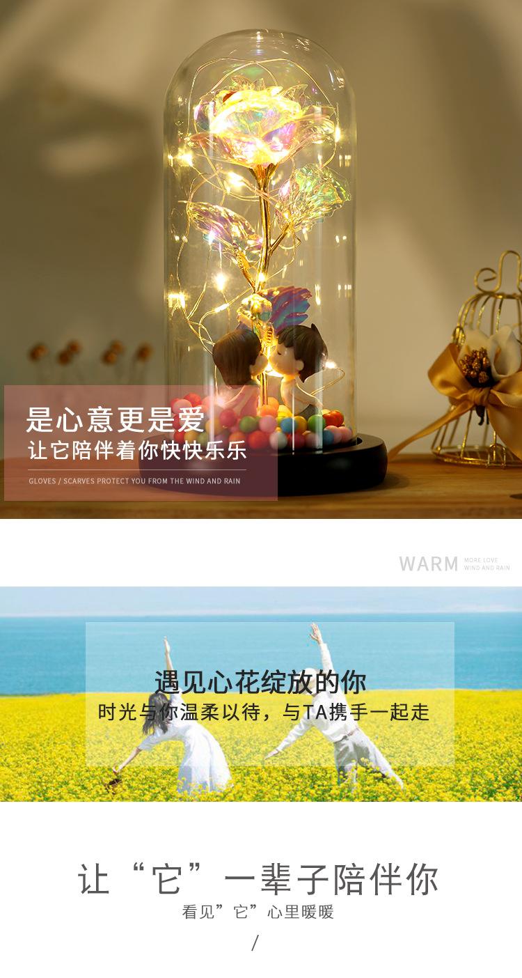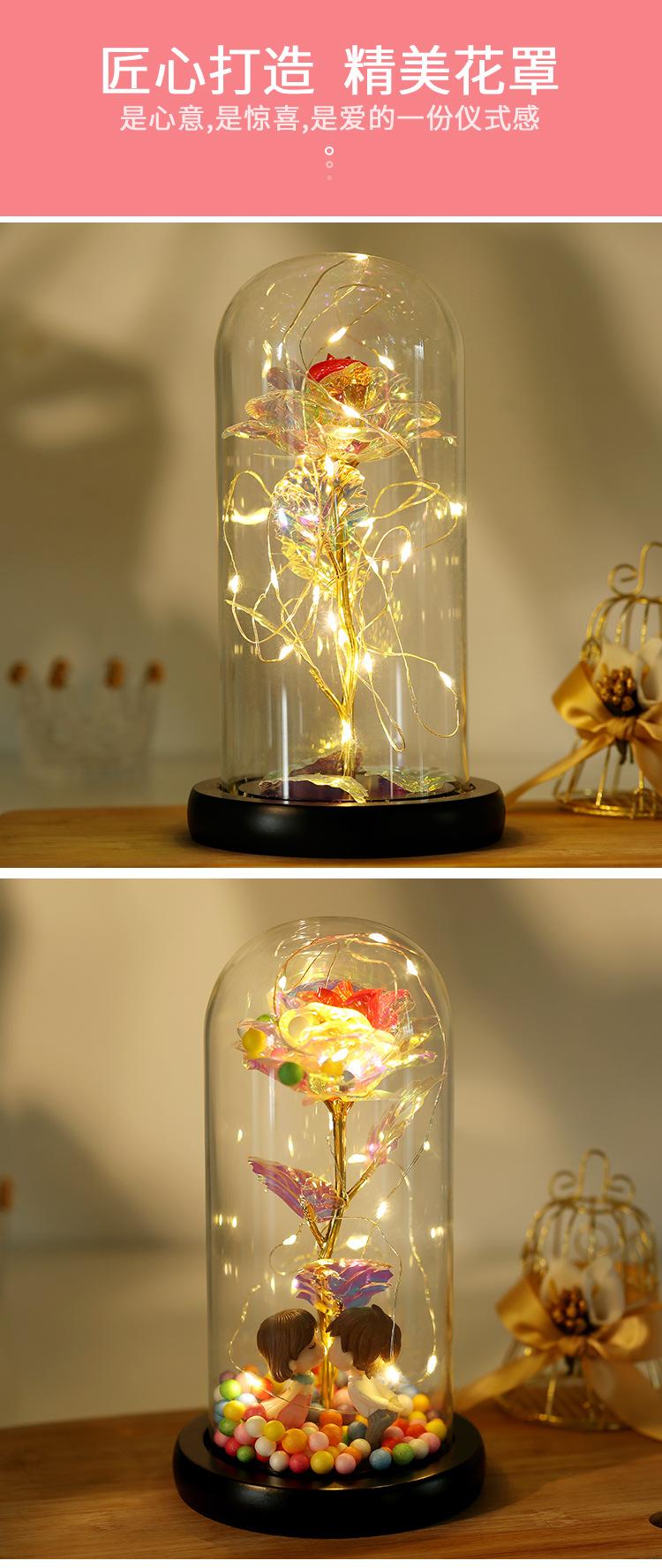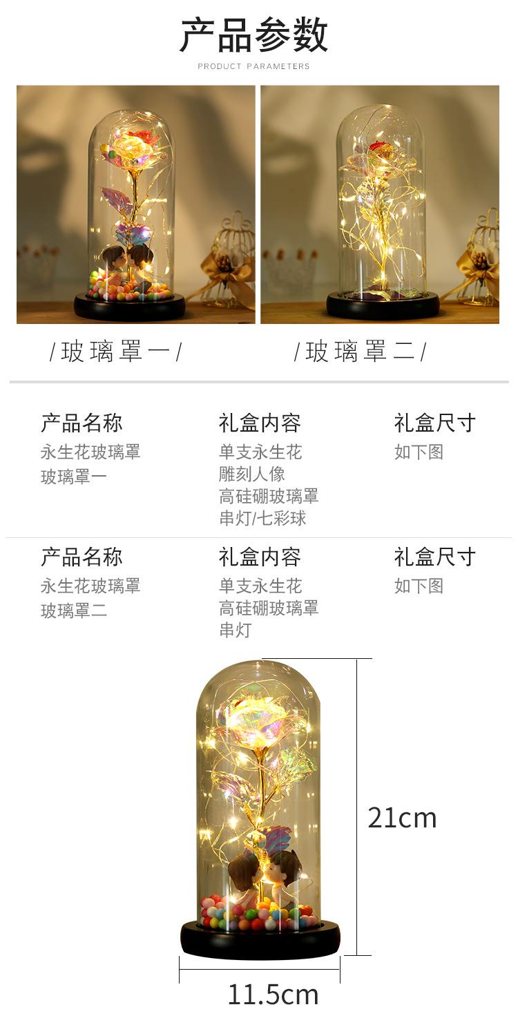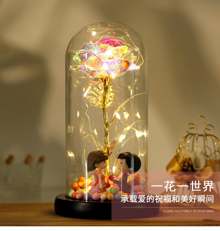 Compre Presente de Dia dos Namorados Flor Colorida Folha de Ouro 24K Cor Ouro Imitação com Luz Rosa Eterna Cobertura de Vidro Conjunto Caixa de Presente no atacado no Joom.pro