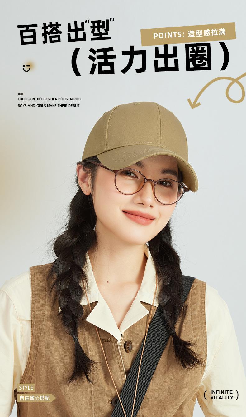 Cap de beisebol hard top para mulheres primavera e verão nova placa de luz simples pico boné casal mesmo chapéu casual cabeça grande perímetro chapéu sol