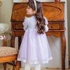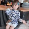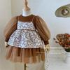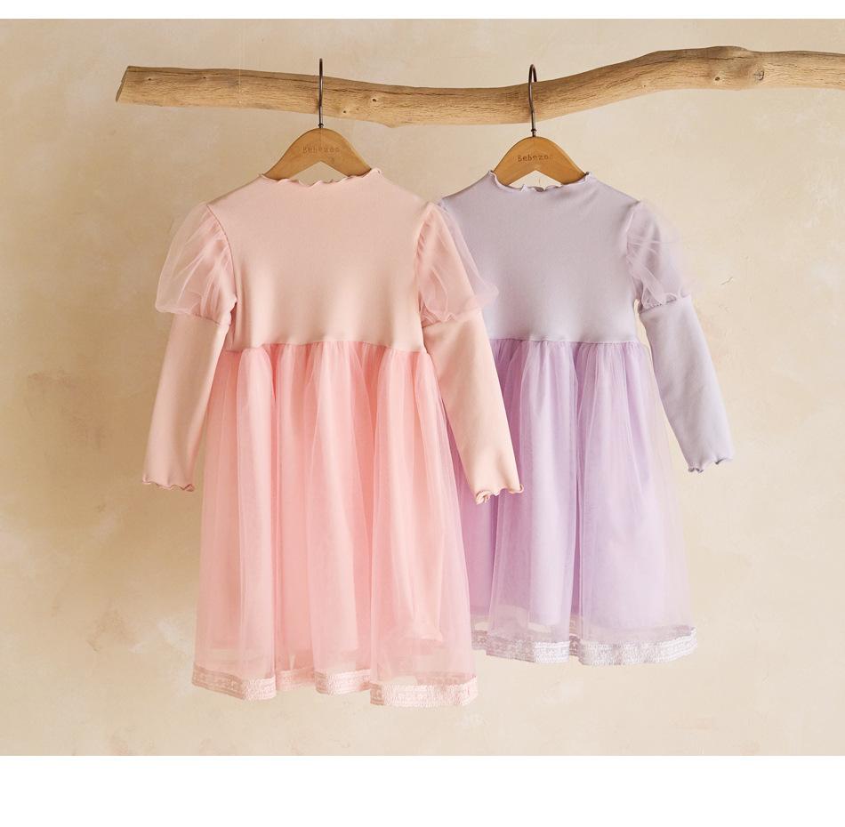 Outono 2022 novo vestido infantil bonito fio de princesa saia suéter costura falso vestido de duas peças vestido coreano das crianças