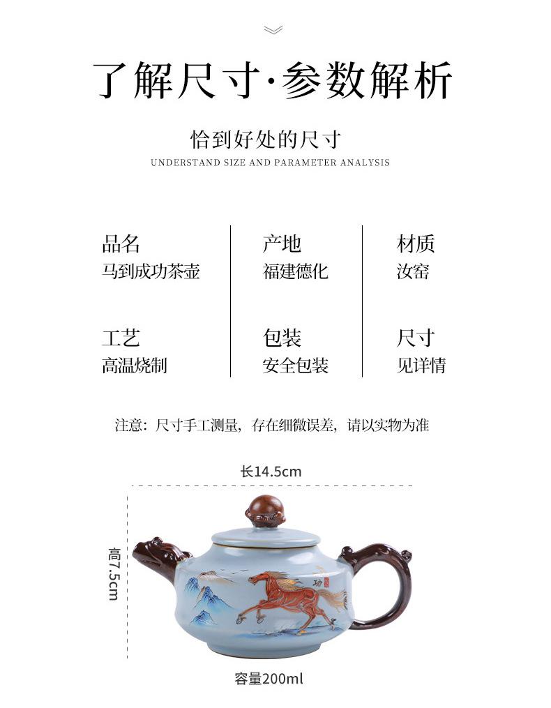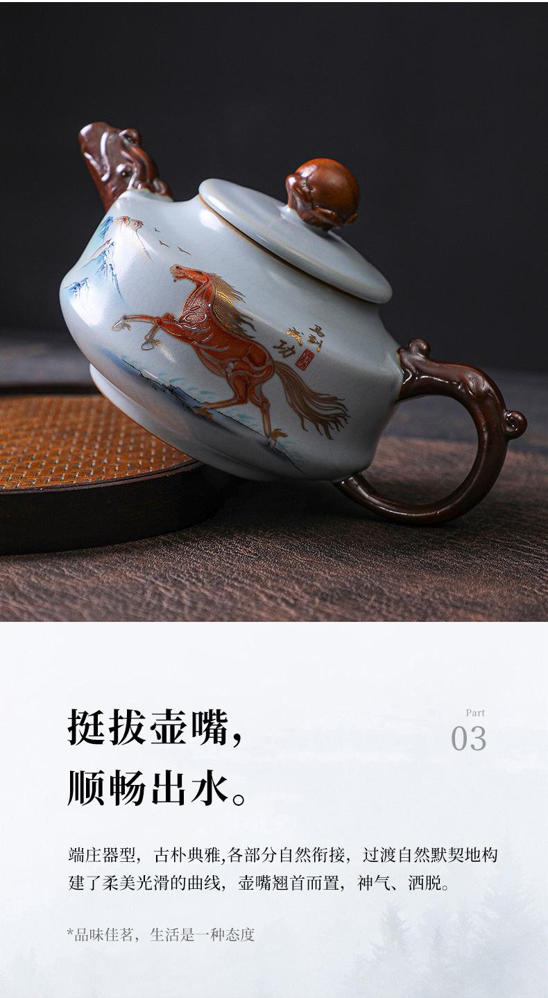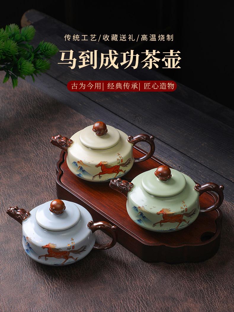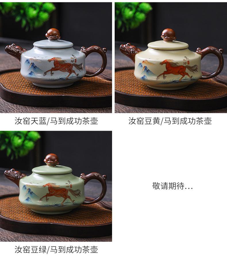 Ru Kiln Sky Blue-horse to success teapot, Ru Kiln Bean yellow-horse to success teapot, Ru Kiln Bean Green-horse to success teapot