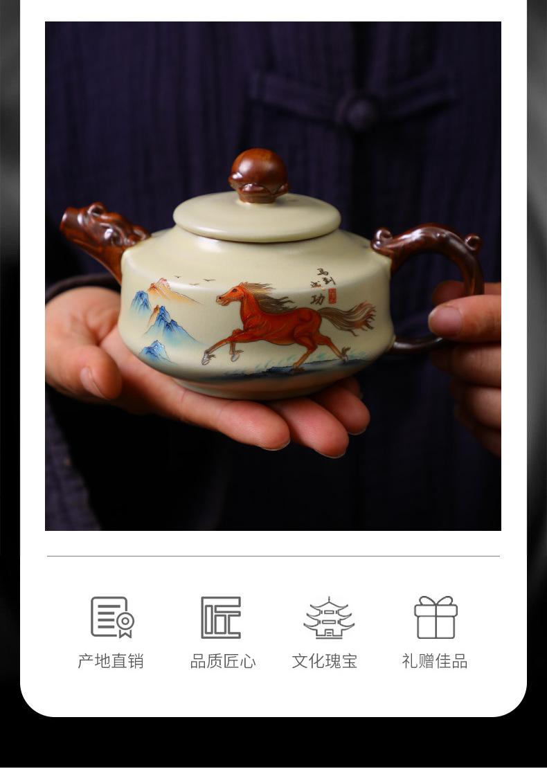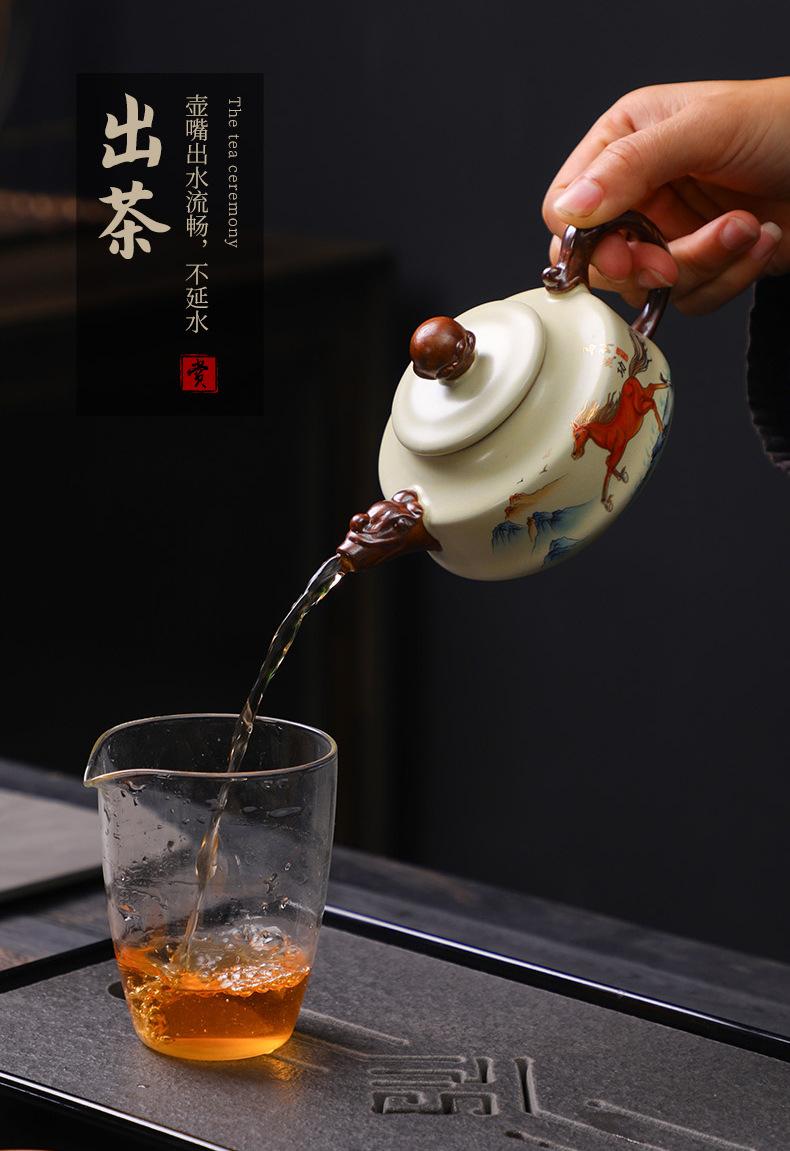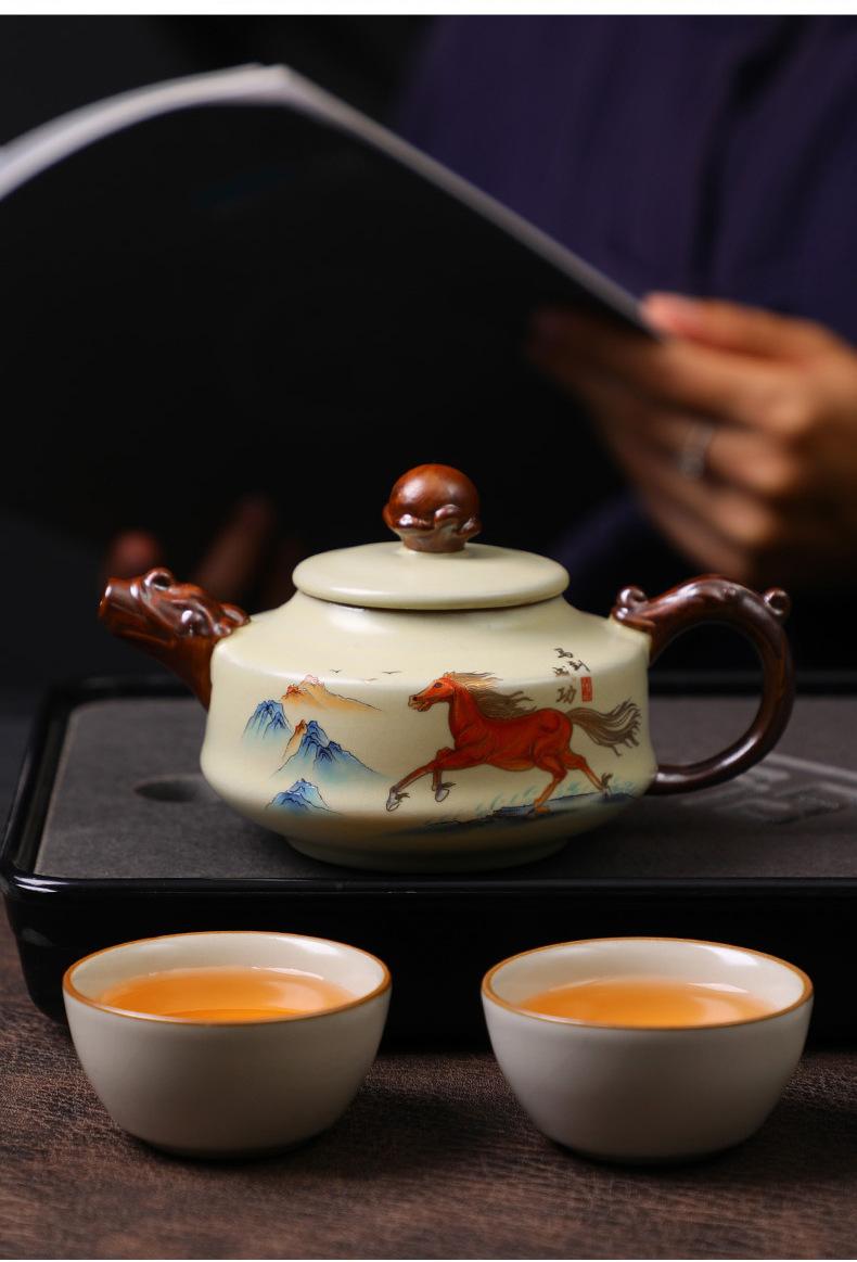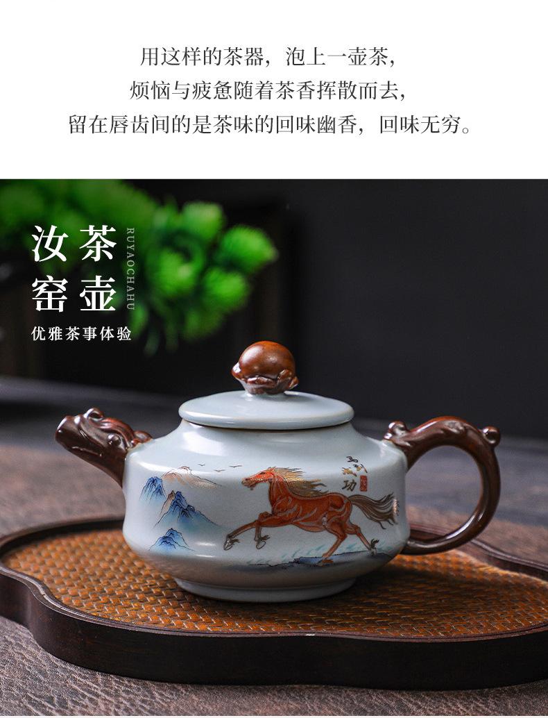 Ru Kiln Sky Blue-horse to success teapot, Ru Kiln Bean yellow-horse to success teapot, Ru Kiln Bean Green-horse to success teapot