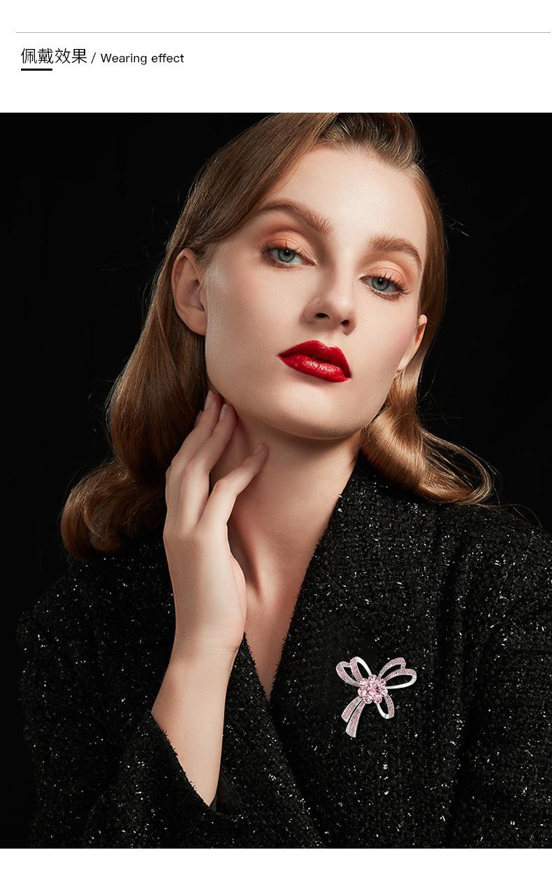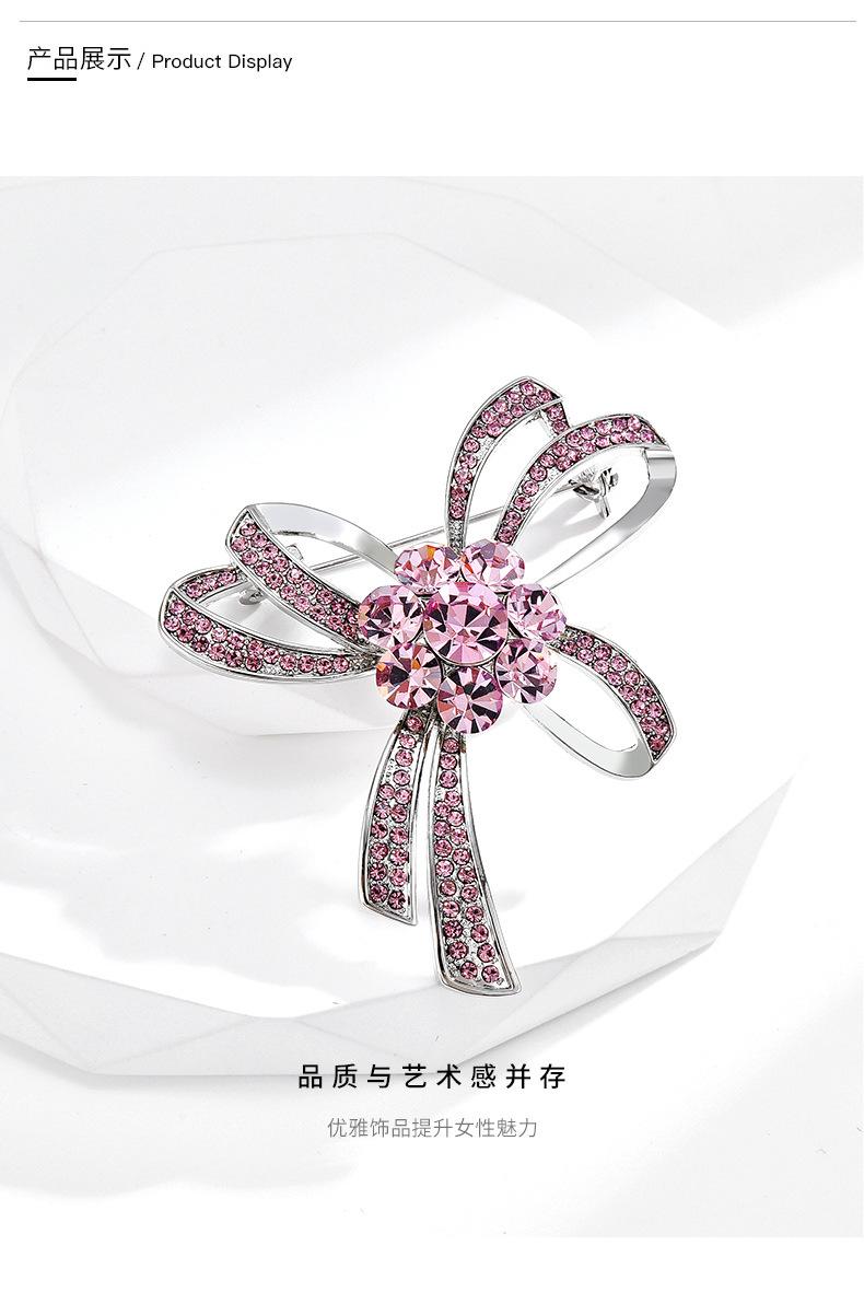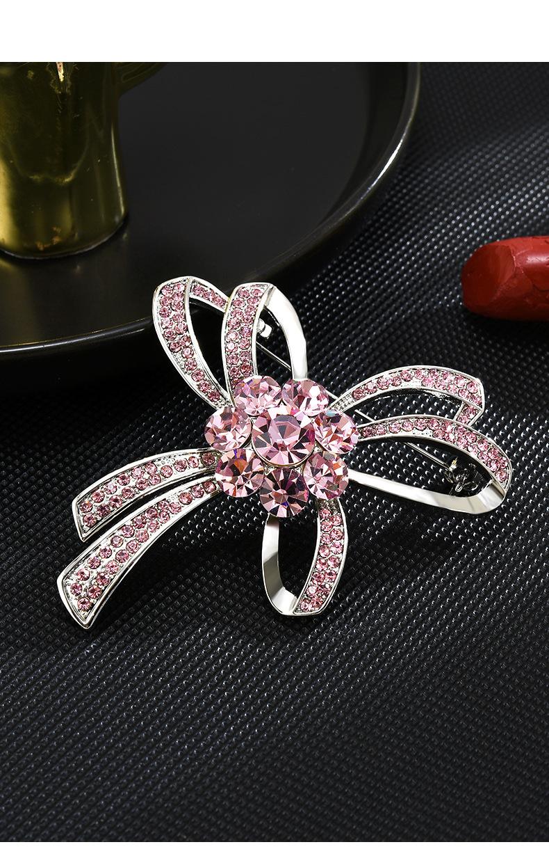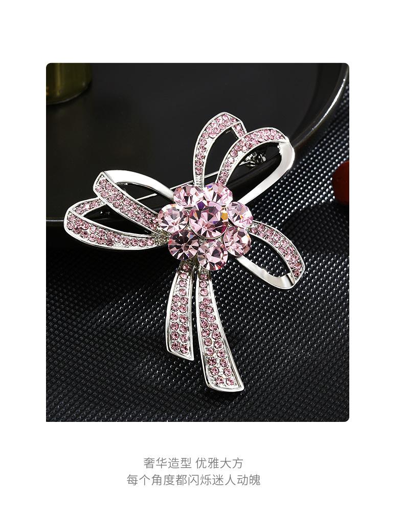 Novo casaco de broche de laço de diamante rosa rosa das mulheres casaco de laço fixo gravata borboleta corsage acessórios de pino